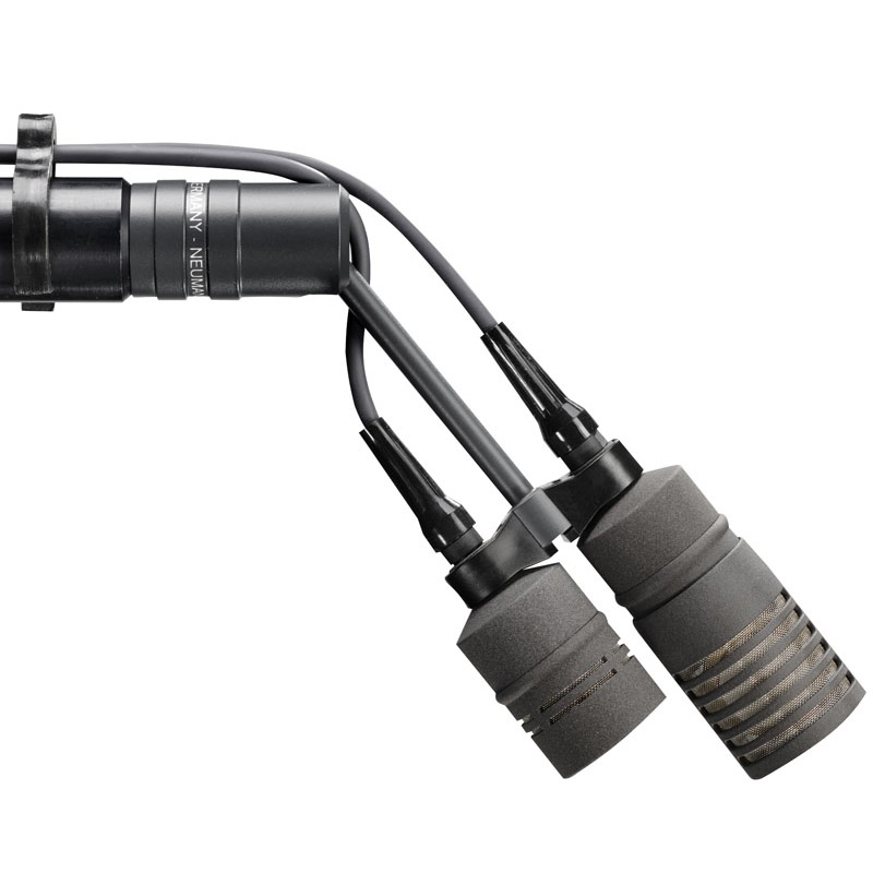 The combination of the capsule KK 185 with the output stage KM A is only one of the numerous options within the Neumann KM A/D small diaphragm microphone system. The Neumann system KM A/D is a modular microphone system for even the most demanding applications. Eight different small diaphragm capsules (KK 120 … KK 185) may be combined with either an analog output stage (KM A) or a digital AES 42 output stage (KM D). All components are available in nickel or Nextel black (nx). A comprehensive range of accessories ensures adaptability to the most diverse fields of application. Compared to its predecessor, the Series KM 100, the new system KM A/D works with passive capsules, which are considerably smaller while retaining the proven acoustic design. New and advanced electronic components allow for many electroacoustic and operational advantages, such as reduced self-noise, an extended dynamic range, and very high electromagnetic immunity. The modular concept permits the capsule to be detached and used at a distance from the output stage of up to 100 m (330 ft), connected via a special cable. For usual applications, the LC 4 cable is available with a length of 5 or 10 meters (ca. 16½ or 33 ft.). Alternatively, capsule extensions of various lengths, swivel capsule joints, and swivel stand mounts, etc. may be used for a flexible microphone setup. The analog and digital output stages have identical dimensions (diameter: 22 mm, length: 93 mm). All accessory parts may thus be combined with both output stages.