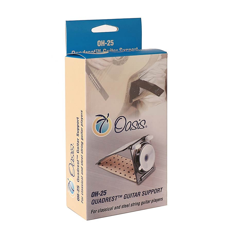 Oasis OH-25 QUADREST je specijalno dizajnirani podmetač namenjen za klasične i akustične gitare. Ovaj stalak omogućava gitaristi pravilan i ergonomski položaj tela prilikom sviranja u sedećem položaju.