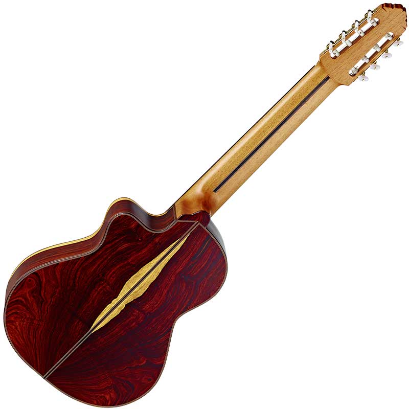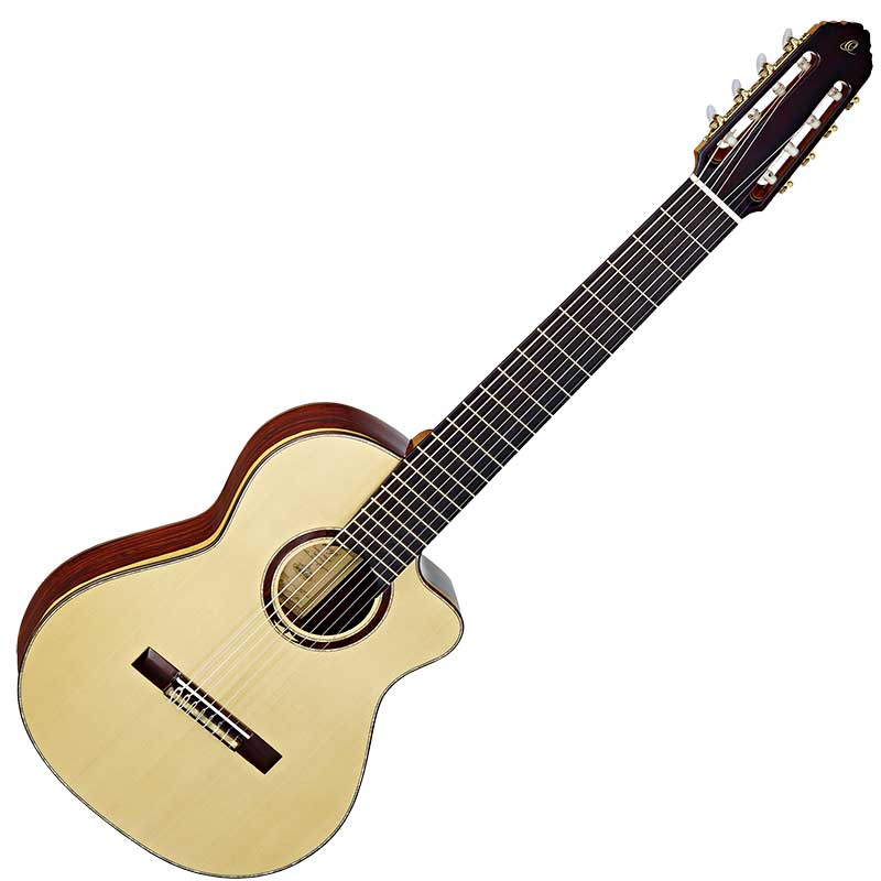 Ortega JRSM-COS klasična gitara. The Ortega JRSM-COS Javier Reyes 8-String Electro Nylon, Solid Spruce Top is perfect for professional performance. Offering an entire solid wood construction, versatile and responsive LR Baggs electronics, 8-strings, baritone scale, and an premium appearance with a full sized classical cutaway body. This Javier Reyes Signature model offers an entire solid wood construction. Featuring a German spruce top and visually striking cocobolo back and sides that produce a versatile sonic-footprint blended with a fast, articulate and responsive tone. Furthermore, the Ortega JRSM-COS features a comfortable classical cutaway body. Offering easy access to upper frets whilst accommodating picking and strumming equally-well. The JRSM-COS also provides a modern twist on the traditional classical guitar with expanded sonic possibilities for a distinct and unique performance. Lastly, this beautifully designed Javier Reyes 8-String comes equipped with an LR Baggs Element preamp system. Perfect for live performance and studio sessions.