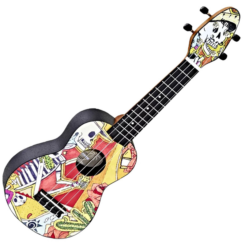 K2-EM (El Muerto custom design) sopran poseduje gornju ploču od agatisa, koji u kombinaciji sa telom od ABS-a proizvodi svetao i tipični havajski zvuk. Kratak vrat (dužina skale 364 mm, širina vrata na nutu 36 mm) od okoume drveta sa ABS grifom omogućuje lagano sviranje što je izuzetno zahvalno za početnike.