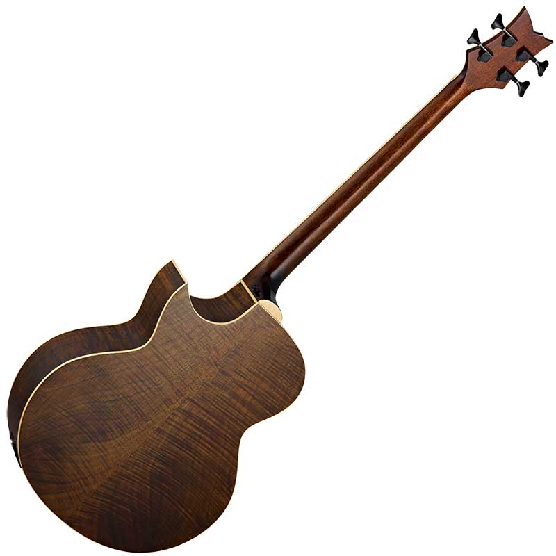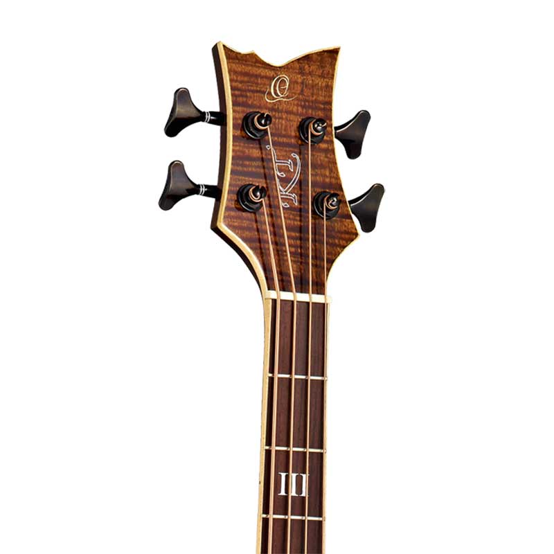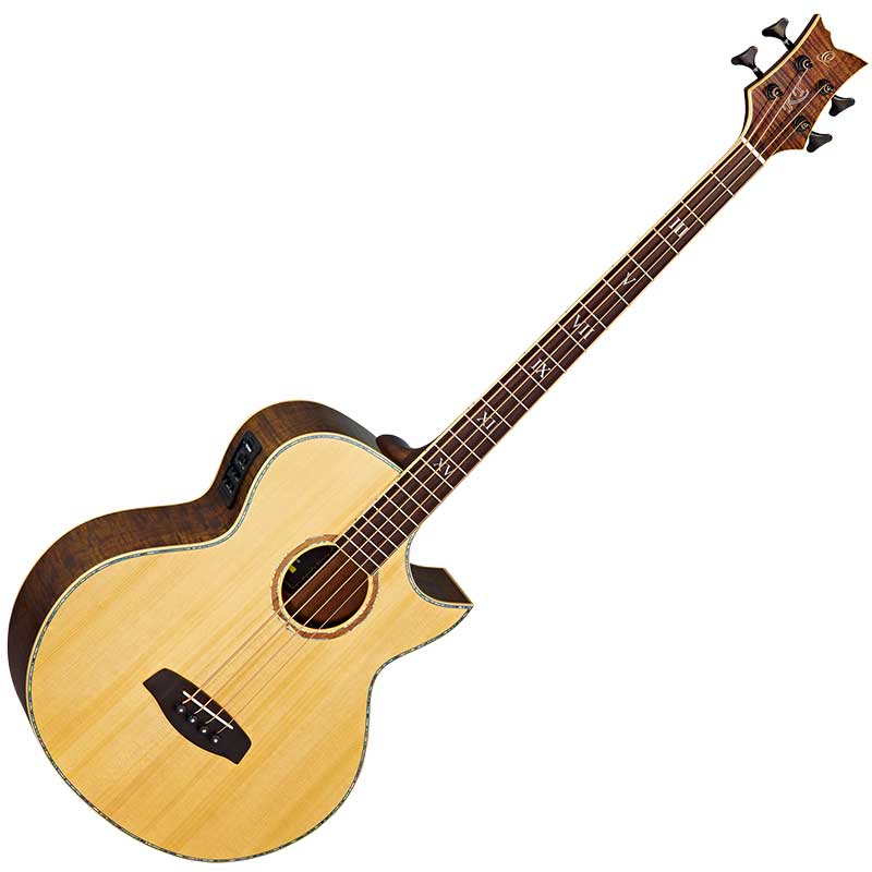 The Ortega KTSM-4 Ken Taylor Electro Acoustic Bass, Gloss Spruce is an artist special model based on Ken Taylor, a legendary bass player known for the groove in the Peter Maffay Band. The Ortega KTSM-4 is designed with traditional and modern players in mind, providing the characteristics of Ken Taylor's instruments, perfect for the performing bass player. With a solid spruce and flamed mahogany construction, the Ortega KTSM-4 produces a well-balanced, warm, and resonant sound with a broad dynamic range, offering a versatile instrument ideal for a wide range of playing styles. Its comfortably curvaceous body is also features a florentine cutaway profile, offering added aesthetic appeal and easy access to upper frets. Equipped with a Fishman Presys+ preamp with XLR/jack, players are certain to benefit from its range of tone shaping options and an on-board tuner. With abalone inlays, a gloss finish, and exquisite flamed mahogany back and sides, the Ortega KTSM-4 is certainly ready for stage-performance.