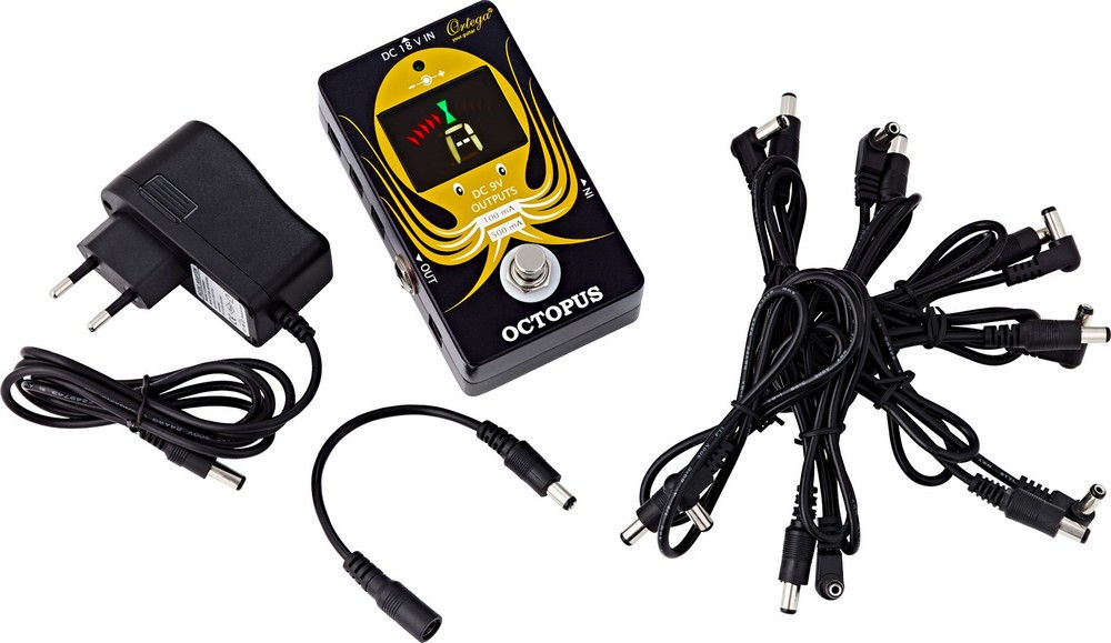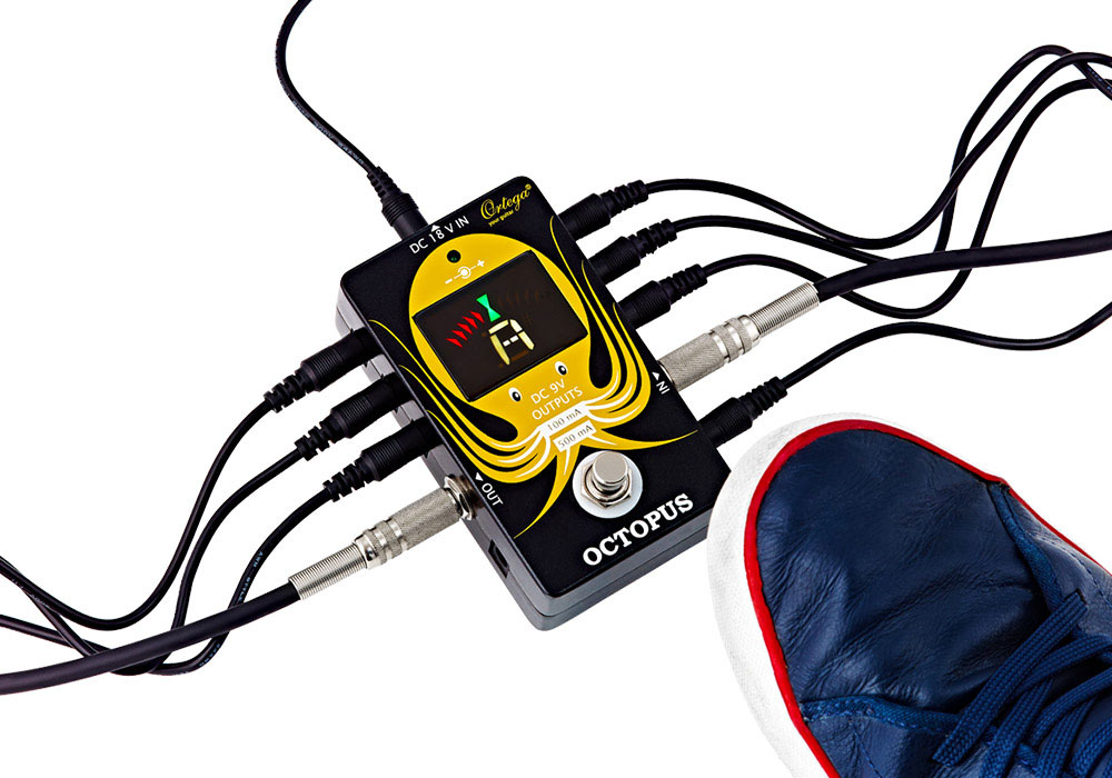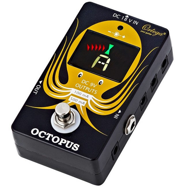 Ortega octopus hromatski štimer je novi epicentar vašeg pedalboarda. Osetljiv i precizan, "mute" u modu za štimovanje. Takoðe, može napajati vaše pedale jer poseduje 6 izlaza na 9V (100ma po izlazu) i 2 na 9V (500ma). Štimer se napaja sa svojim ispravljačem na 18V.