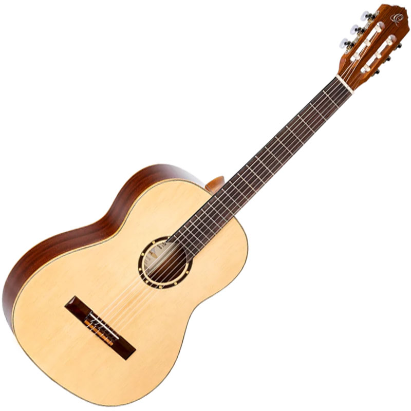 - Kombinacija prednje ploče od smreke, i zadnje ploče, stranica, i vrata od mahagonija daje ovoj gitari autentičan i kvalitetan ton, dok brižljiv proces proizvodnje i ugrađena šipka dvostruke akcije obezbeđuju svirljivost koja značajno prevazilazi okvire klase. Dolazi u elegantnom high gloss (sjajnom) finišu, sa Ortega deluxe torbom. Izuzetan instrument za učenike muzičkih škola i hobi svirače.