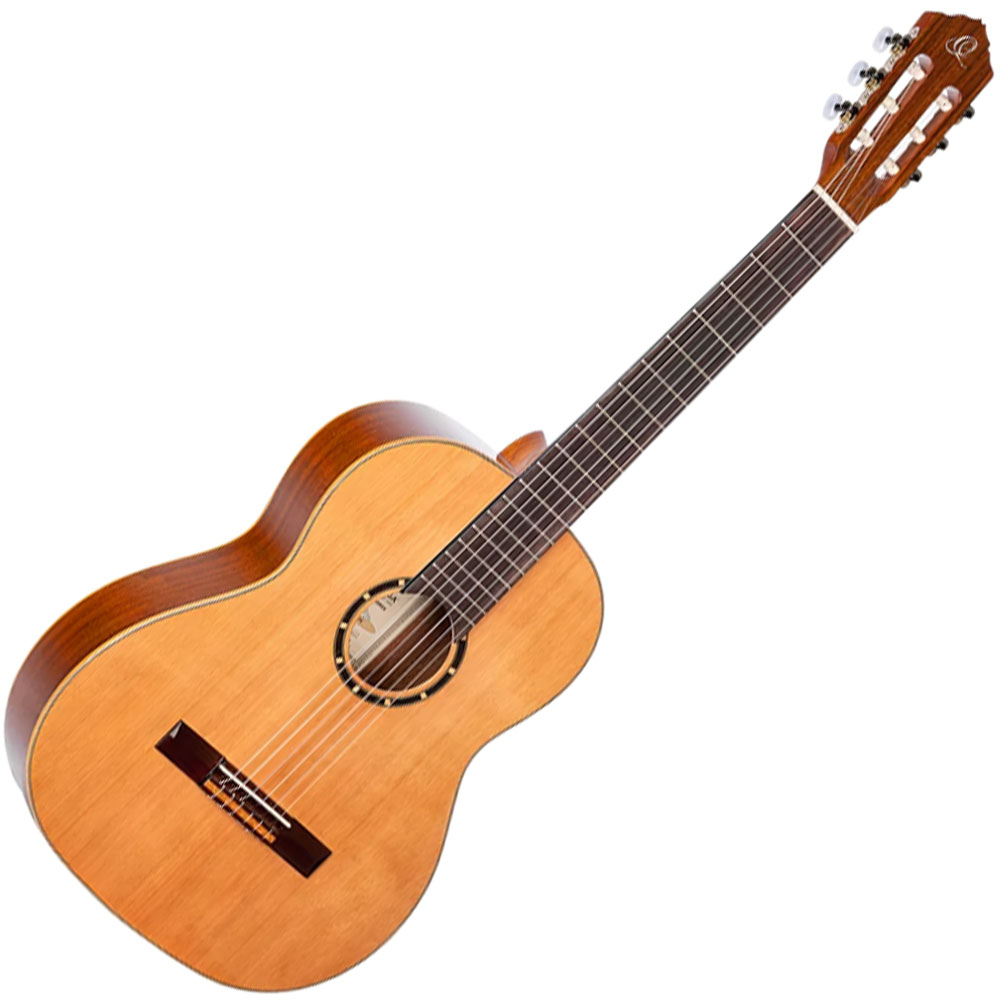 - Sa gornjom pločom od kedra i donjom pločom od mahagonija ova gitara daje izuzetan zvuk; dok brižljiv proces proizvodnje i ugrađena šipka dvostruke akcije obezbeđuju svirljivost koja značajno prevazilazi okvire klase. Dolazi u elegantnom high gloss (sjajnom) finišu, sa Ortega deluxe torbom. Idealna gitara za napredne početnike, hobiste ili učenike muzičke škole.