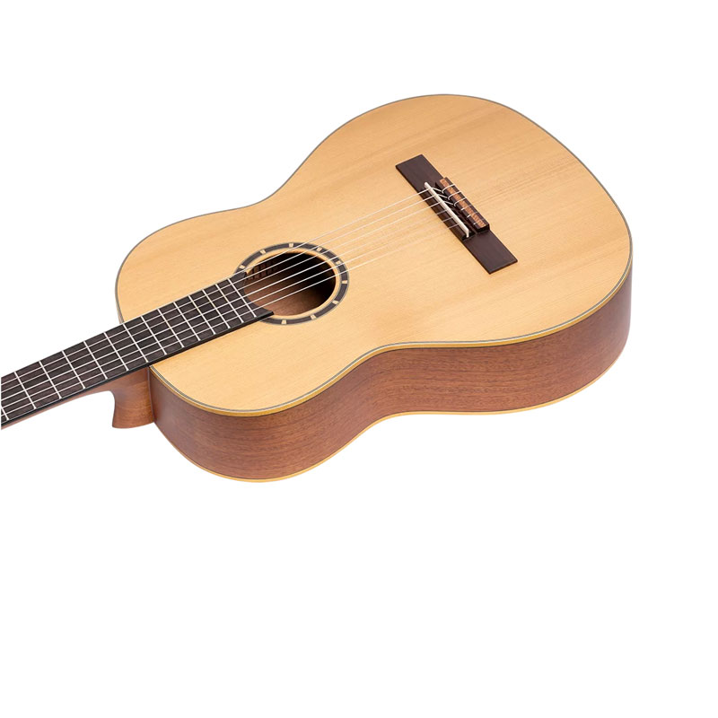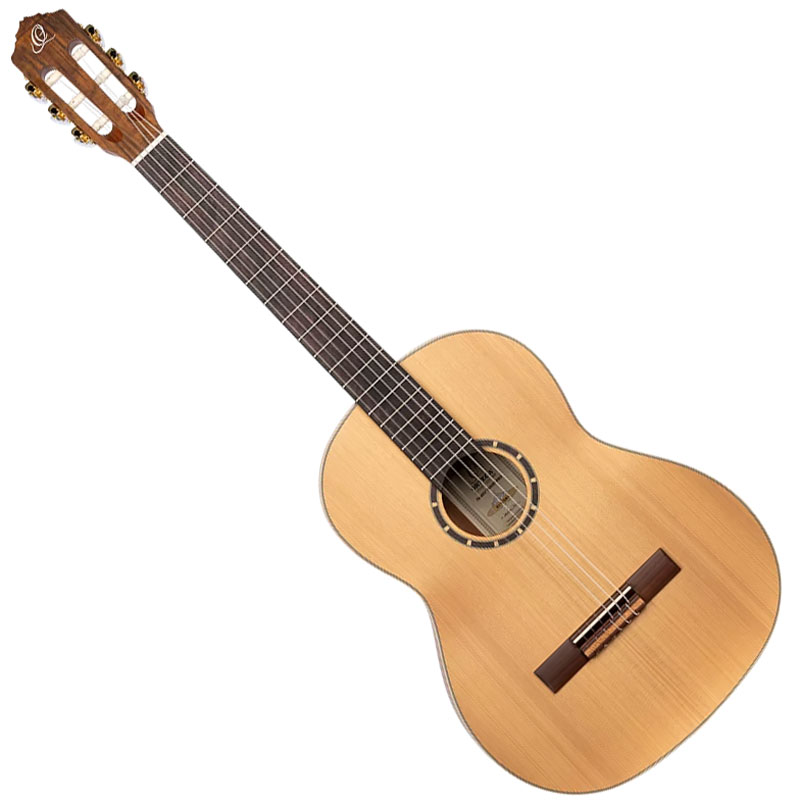Ortega R131SN-L klasična gitara. The Family Pro series incorporates all the valuable features from the best-selling Family series and adds a solid top for those players. Who desire a fuller tonal response. This series also introduces our cross-over thinline acoustic/electric models in a variety of finish options.