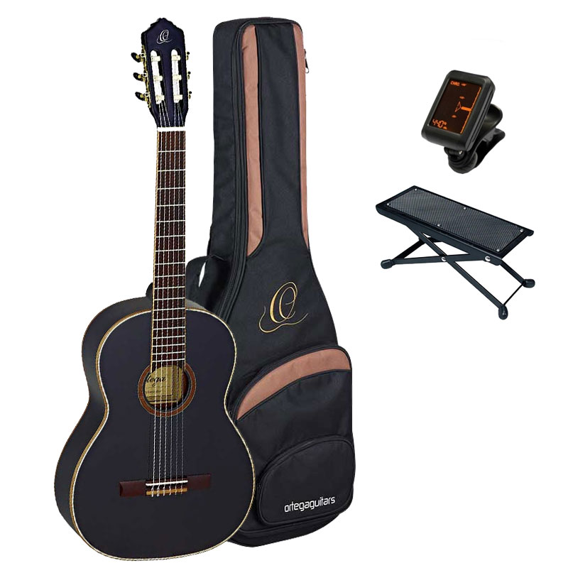 - Kompletan prateći pribor za bezbrižno muziciranje. Kvalitetna, debela, čvrsta i nepromočiva Ortega deluxe futrola, Adam Hall SGS017 klupica za nogu i štimer.Ortega R121BK paket je zaokružen paket po neverovatnoj ceni - za sigurne prve sviračke korake. Kombinacija prednje ploče od smreke, i zadnje ploče od mahagonija daje ovoj gitari autentičan i kvalitetan ton. Dolazi u elegantnom crnom finišu, sa Ortega deluxe torbom. Izuzetan instrument za učenike muzičkih škola i hobi svirače.