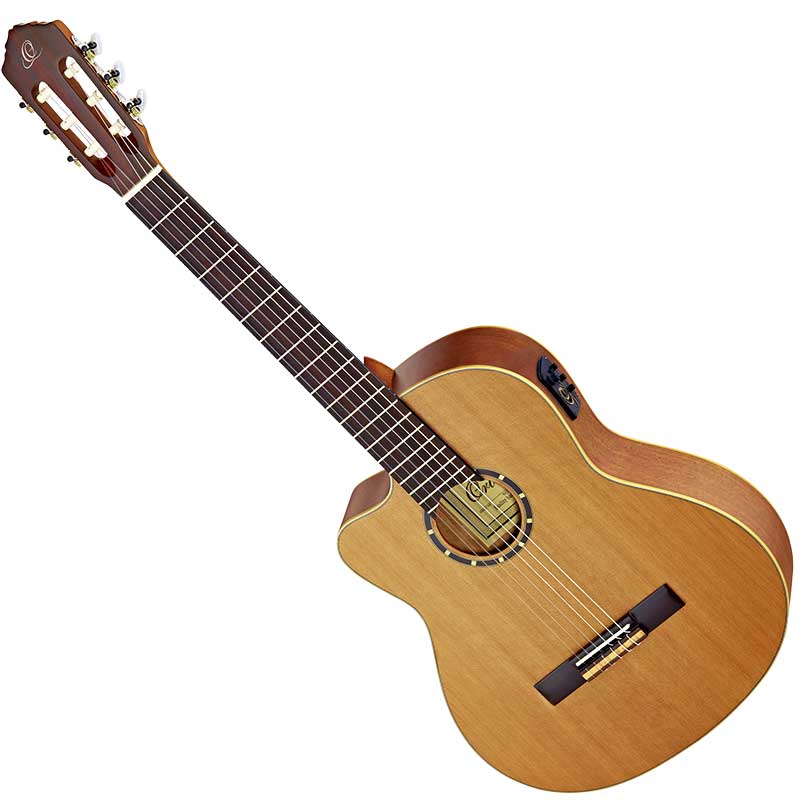 Ortega RCE131SN klasična gitara je prava gitara za profesionalce. Odlična ozvuka koja se dobro ponaša na razglasu, ali i u studiju. Tanji profil vrata, 48mm naspram standardnih 52mm. Ortega RCE131SN ima prednju ploču od punog drveta kanadske smreke, stranice i zadnju ploču od ružinog drveta. Gitara dolazi u kompletu sa odličnim gigbag-om i kaišem.
