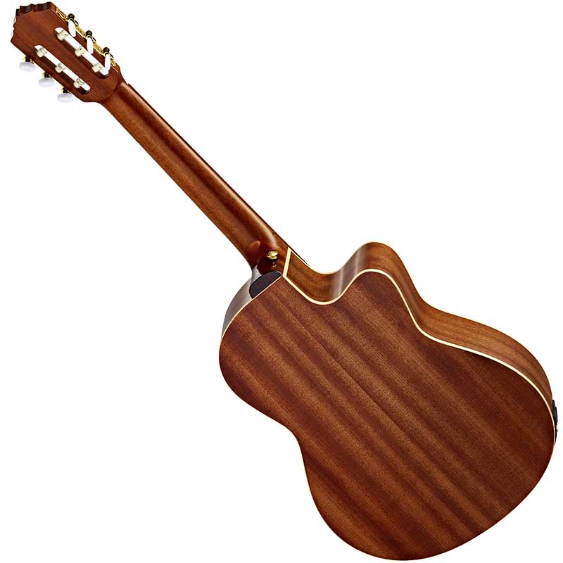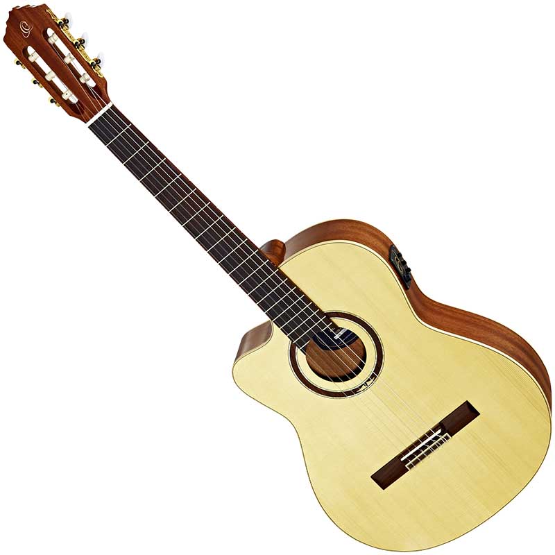 Ortega RCE138SN-L slim neck ozvučena klasična gitara levoruka. The Ortega RCE138SN-L Electro Nylon, Solid Spruce Top. Provides the left handed player with a full-sized and sonically-versatile classical guitar with a quality solid top. Comfortable cutaway profile, and on-board electronics, perfect for live and studio work. With a solid Canadian spruce top and mahogany back and sides, the Ortega RCE138SN-L produces a versatile, powerful, and distinct sound with plenty of warmth, resonance and mid-range emphasis. Additionally, the mixture of tonewoods accommodates basic arpeggios to more complex classical, Spanish, and Flamenco styles. The Ortega RCE138SN-L also features a traditional full-sized classical cutaway body offering a comfortable playing experience and easy access to upper frets with a brilliant response to a wide variety of picking and strumming techniques. For added comfort, the RCE138SN-L features a comfortable slim neck profile, perfect for smaller hands and shorter fingers. Lastly, equipped with a MagusPro preamp, the Ortega RCE138SN-L Electro Nylon is ideal for live and studio performance.