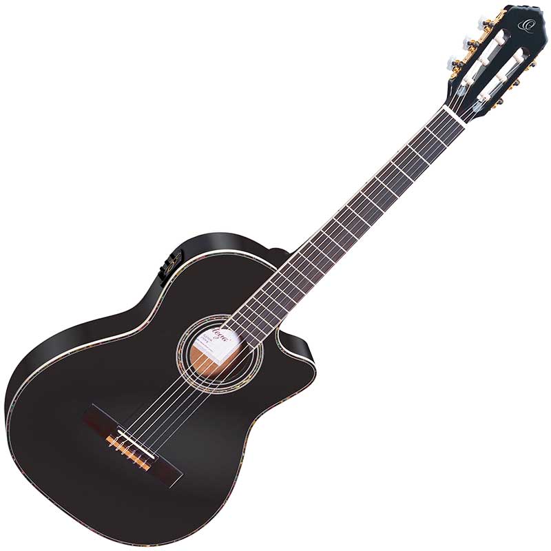 Ortega RCE145BK klasična gitara. This classical electro acoustic guitar has a solid Spruce top. Ortega electronics/tuner, slim neck and comes with a strap and gigbag. Ortega are committed to ensuring that the specifications of their instruments meet the wishes and requirements of music lovers all over the world. Regardless of whether you are a beginner. Budding star ready to hit the stage or have already "made it" to the top, the folk at Ortega are just like you; they love to get together to play instruments and have fun. Because of this, they understand your requirements and view them as a challenge. Experiencing enjoyment when playing an instrument is the best way to be creative. Many of their instruments were created this way, but there is one thing they shall never forget, and that is to listen to you, the people who share the love of making music. Happy playing!