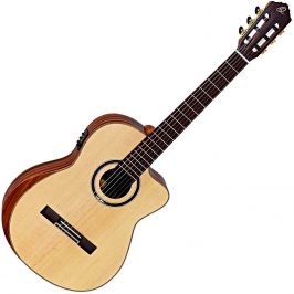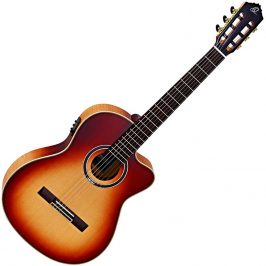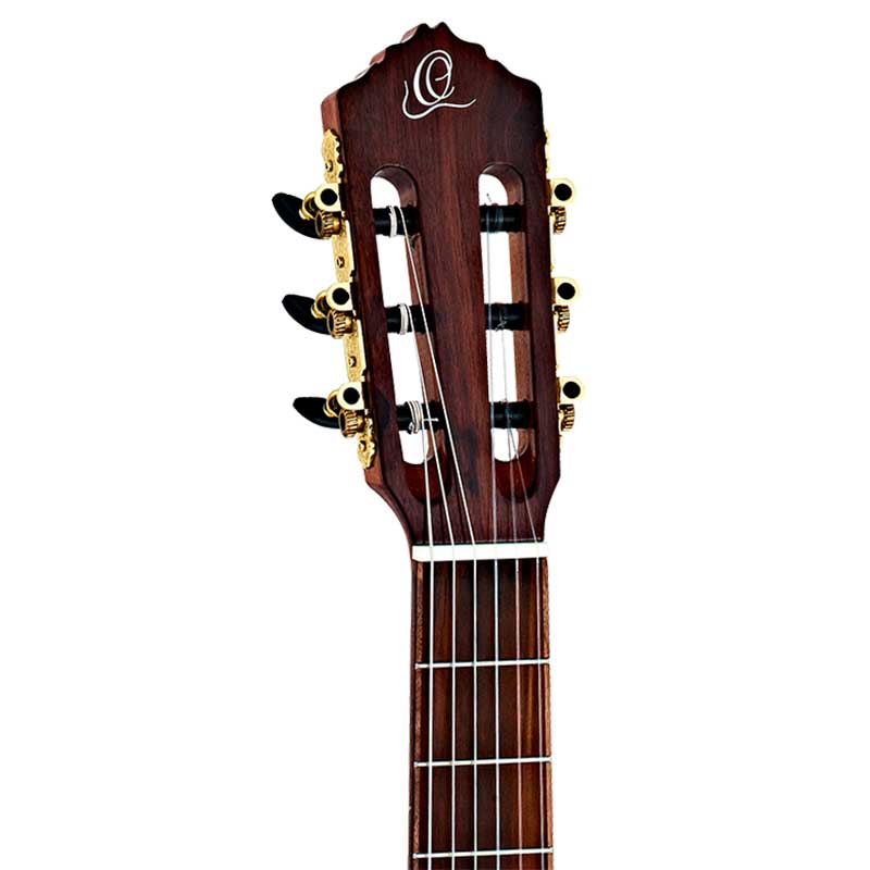 Ortega RCE158SN klasična gitara. The Ortega RCE158SN Classical Guitar offers comfortable playability to the intermediate musician. The Canadian Spruce top produces a bright tone with loud projection. The Rosewood back and sides add depth and complex overtones to your tone. The RCE158SN has a slimmer neck and 48mm nut width, which is ideal for players who want to play for long periods with ease. This model comes equipped with Ortega's MagusPro-NL system with an in-built tuner and EQ options.