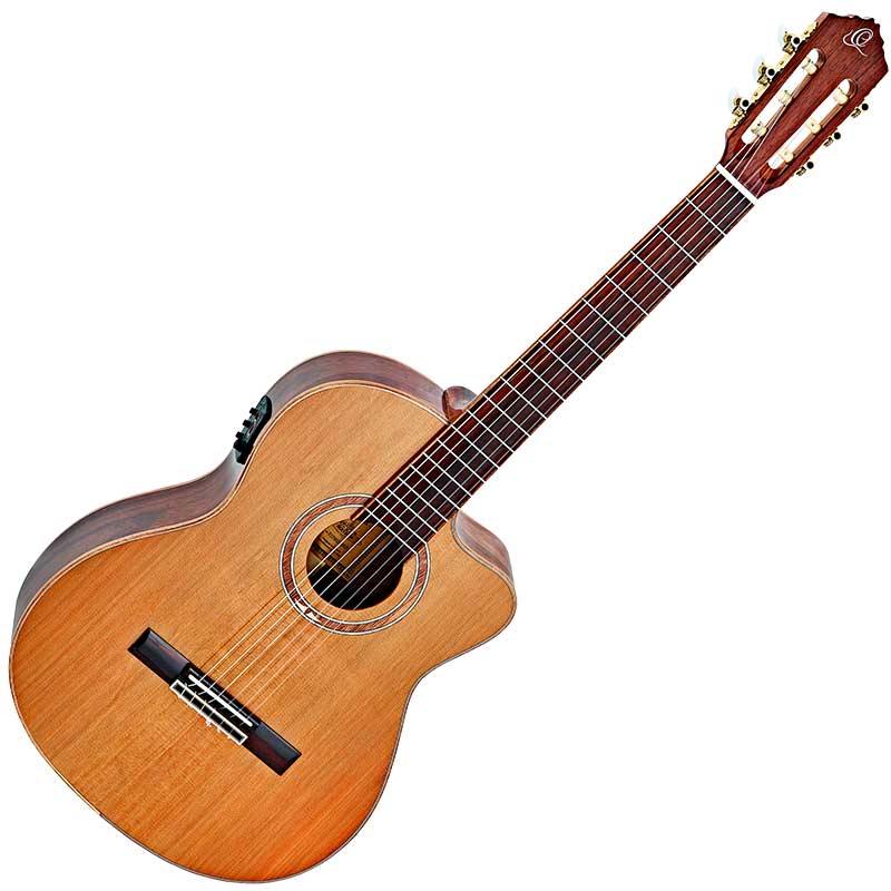 Ortega RCE159SN klasična gitara je prava ozvučena gitara za profesionalce. Odlična ozvuka koja se dobro ponaša na razglasu, ali i u studiju. Tanji profil vrata, 48mm naspram standardnih 52mm. Ortega RCE159SN ima prednju ploču od punog drveta kanadskog kedra, a stranice i zadnju ploču od ružinog drveta. Gitara dolazi sa odličnim gigbag-om.