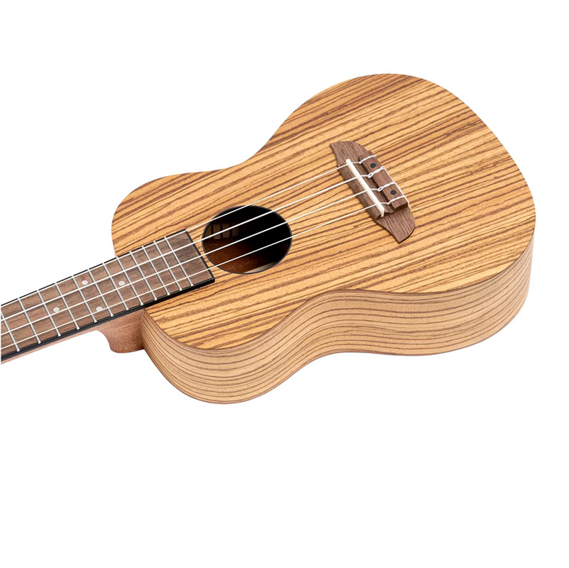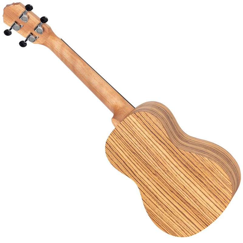 Ortega RFU11Z-L ukulele. Timber series ukuleles are made from a variety of the finest select tonewoods from around the world. These exceptional ukuleles are meticulously crafted to highlight the unique tonal and visual properties inherent in each species of wood. Mahogany: Understated beauty with warm resonance and a pronounced mid-range Zebrawood: Striking figuring with a full sound and darker overtones Ebony: Rich color depth with a clear and powerful dark tonality that accentuates the bass frequencies Cedar: Classic elegance with a warm, balanced projection Acacia: Dense striping with a deep, woody tone.