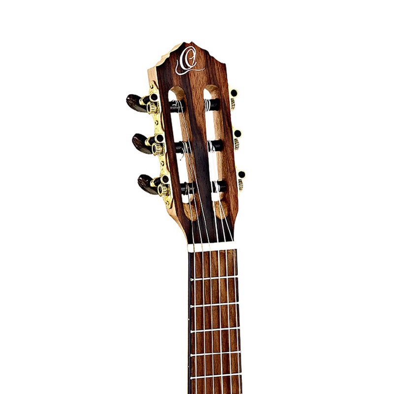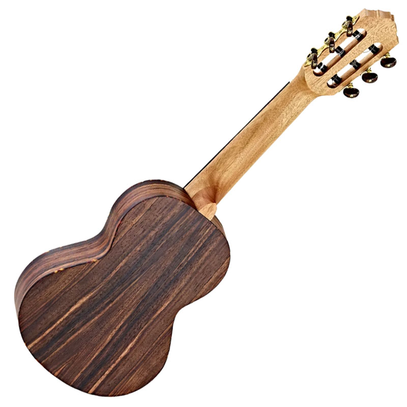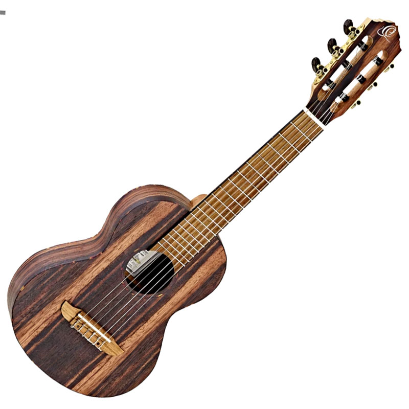 Ortega RGL5EB ukulele. Timber series ukuleles are made from a variety of the finest select tonewoods from around the world. These exceptional ukuleles are meticulously crafted to highlight the unique tonal and visual properties inherent in each species of wood. Mahogany: Understated beauty with warm resonance and a pronounced mid-range Zebrawood: Striking figuring with a full sound and darker overtones Ebony: Rich color depth with a clear and powerful dark tonality that accentuates the bass frequencies Cedar: Classic elegance with a warm, balanced projection Acacia: Dense striping with a deep, woody tone