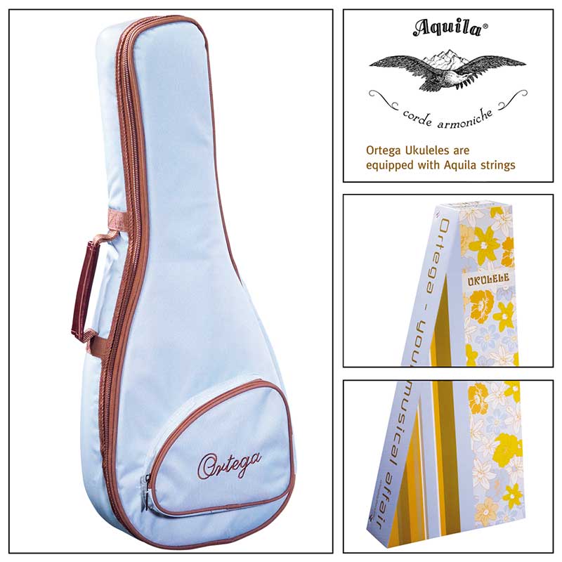 Ortega RU10 ukulele. Timber series ukuleles are made from a variety of the finest select tonewoods from around the world. These exceptional ukuleles are meticulously crafted to highlight the unique tonal and visual properties inherent in each species of wood. Mahogany: Understated beauty with warm resonance and a pronounced mid-range Zebrawood: Striking figuring with a full sound and darker overtones Ebony: Rich color depth with a clear and powerful dark tonality that accentuates the bass frequencies Cedar: Classic elegance with a warm, balanced projection Acacia: Dense striping with a deep, woody tone