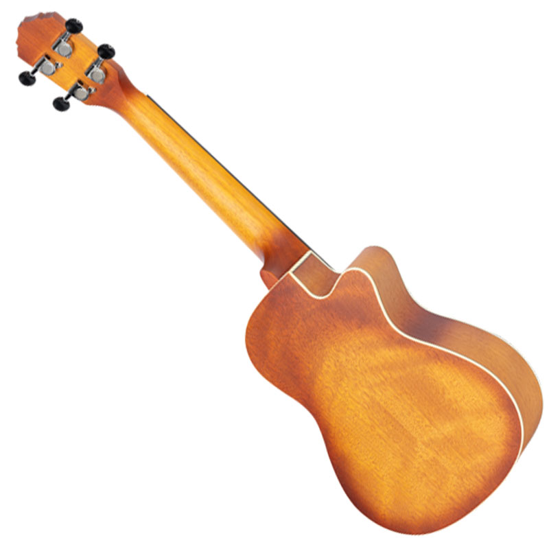 Ortega RUDAWN-CE-L ukulele. Our popular Earth series is offered in 10 beautiful colors, with or without electronics. The colorful ukuleles have a transparent open pore finish and optional electronics with a built-in tuner.