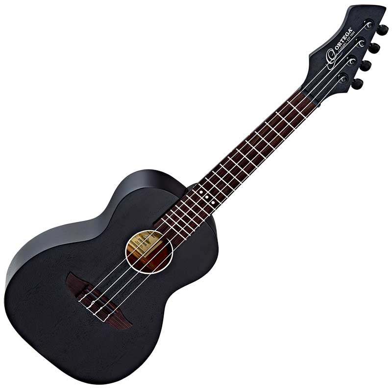 Ortega RUHZ-SBK ukulele. Three new models are added in 2019. Sea foam green and satin black with Okoume top, back, sides and neck and a natural looking beauty fully made out of mahogany. All models are concert sized and feature our 4 in line headstock. An open pore finish and come with a FREE deluxe gig bag.