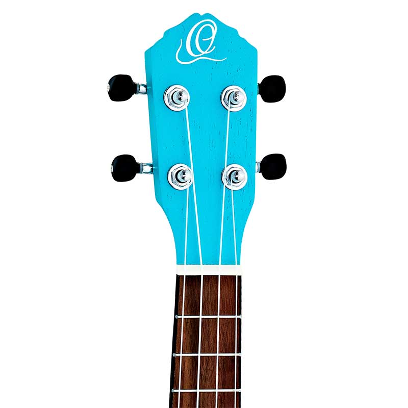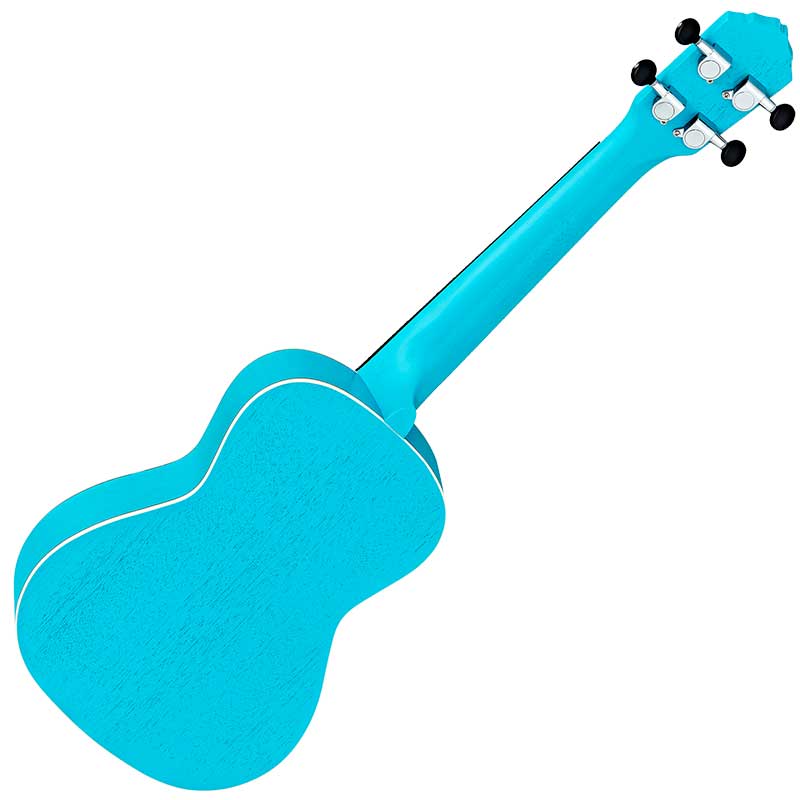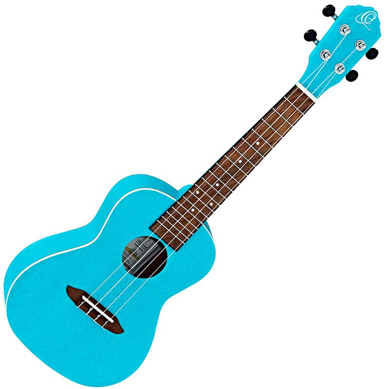 Ortega RULAGOON ukulele. Concert Acoustic Ukulele's body is crafted entirely from okoume, which delivers a rich, well-balanced, and resonant ukulele voice that is well-suited to a wide range of playing styles. With a mahogany neck and walnut fingerboard. Ortega RULAGOON offers a smooth playing experience that responds greatly to many different playing styles. The Ortega RUGLAGOON also features a concert body which produces a rich, clear sound that is ideal for ukulele soloists. Its concert size has 18 frets, and with its extended range, ukulele soloists are able to perform more technical skills and styles of play. Finished in satin with a blue lagoon colouring, white binding. Chrome hardware with black buttons. The Ortega RULAGOON offers a striking appearance that is sure to stand out from the crowd.