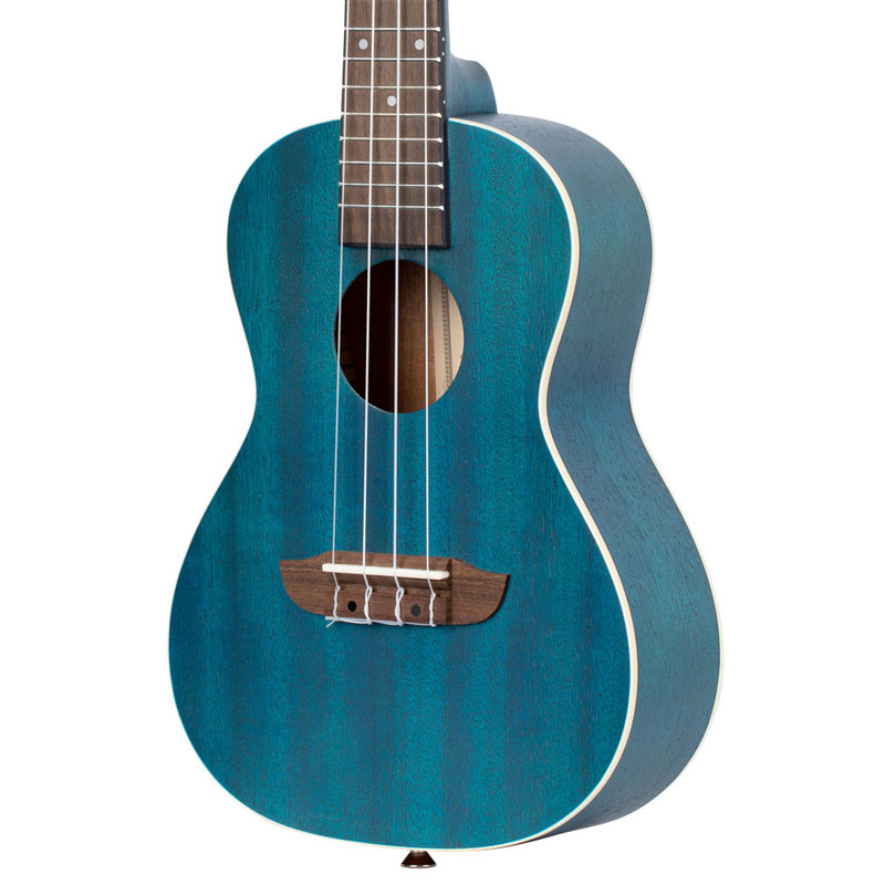 Ortega RUOCEAN-L ukulele. Our popular Earth series is offered in 10 beautiful colors, with or without electronics. The colorful ukuleles have a transparent open pore finish and optional electronics with a built-in tuner.