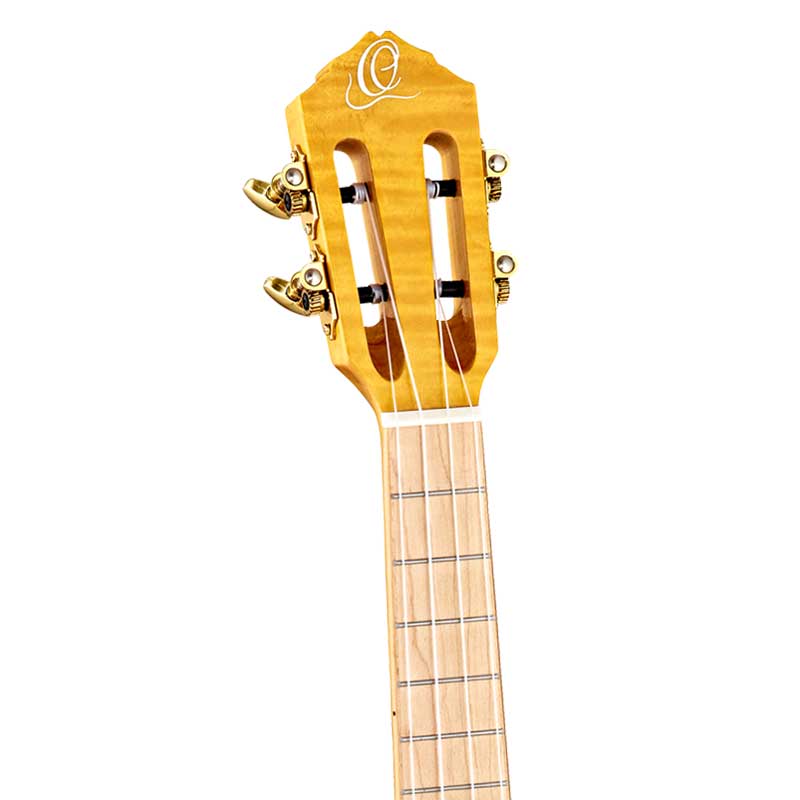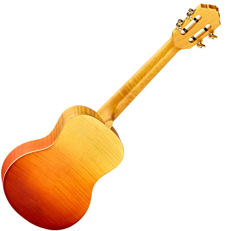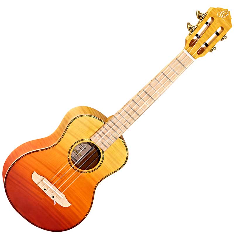 Ortega RUPR-TQB ukulele. Color up your life with our new PRISM SERIES ukuleles. These three tenor sized ukuleles feature a flamed maple top, back & sides. Golden single tuning machines and are available in three pristine looking faded colors. The Prism Series Ukuleles are strung with our own Ortega Guitars UWN-4-TE strings and come with a FREE deluxe gig bag.
