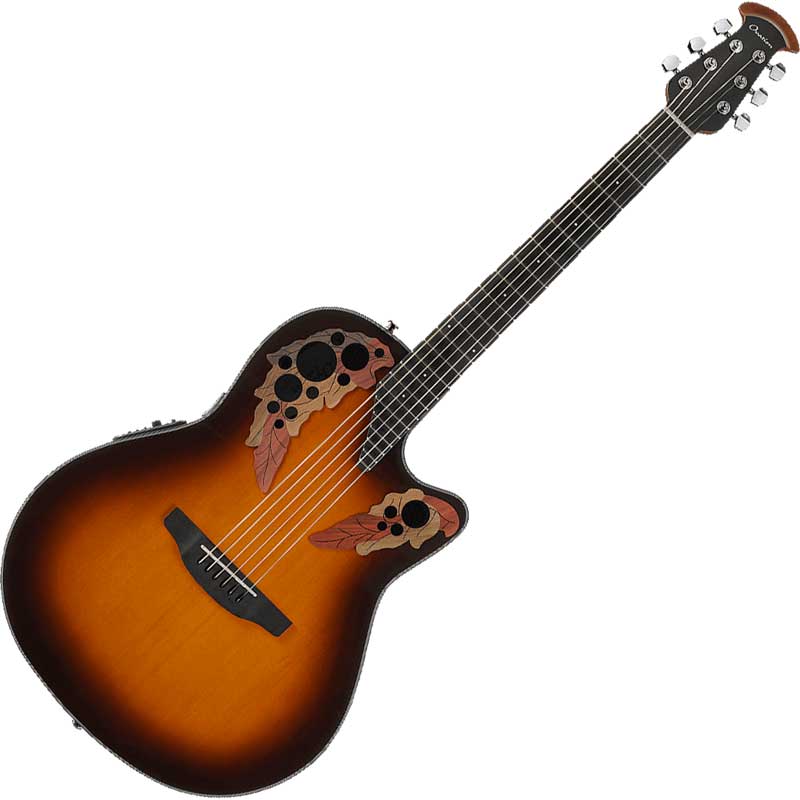 - CE44-1 poseduje kompozitno Lyrachord telo srednje dubine, sa isečkom, i punom gornjom pločom od smreke. Multi-port zvučni otvori osmišljeni su sa ciljem da smanje mikrofoniju, i unaprede odziv na niskim frekvencijama. Rezultat je jasan, fokusiran ton u celom opsegu. Mahagoni vrat, sa udobnim profilom, radijusom od 10 inča, i 23 praga, u satenskom finišu. Ugrađeni OCP100 piezzo pickup, i OP-4BT preamp sa 3-band EQ-om i integrisanim štimerom, profesionalnog ranga. Tradicionalna Ovation kobilica bez pinova poboljšava rezonanciju, i nudi bogat sustain. Izuzetno izbalansiran, neverovatno udoban instrument, sa klasičnim zvukom, obožavanim od muzičara širom sveta. Besprekoran kvalitet materijala i temeljna, precizna izrada osiguravaju bezbrižnu upotrebu i na najvećim binama.