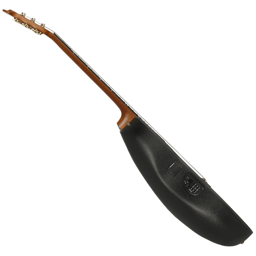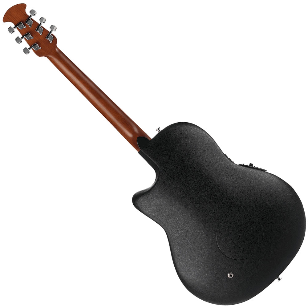 - Celebrity Elite CE44P-TGE poseduje kompozitno Lyrachord telo srednje debljine, sa isečkom, i gornjom pločom od školjkastog javora. Patentirani Multi-port zvučni otvori osmišljeni su sa ciljem da smanje mikrofoniju, i unaprede odziv na niskim frekvencijama. Brižljiva unutrašnja konstrukcija sa X upornicama omogućava ogroman, zaokružen akustični ton, sa jasnom definicijom u svim opsezima. Specifičan oblik leđa je decenijama zaštitni znak Ovation modela, i u direktnoj je vezi sa njihovim jedinstvenim zvučnim izrazom. Čvrst, stabilan vrat od mahagonija nosi veoma udoban profil, uz širinu konjića od 43 mm. Skala od 25.3 inča, radijus od 10 inča i 23 praga odgovaraju većini sviračkih stilova. Ugrađena šipka garantuje uvek optimalan setup instrumenta, bez obzira na debljinu žica ili klimatske prilike. CP-100 piezo pickup i OP-4CT preamp savršeno se snalaze u svim situacijama snimanja ili živih nastupa. Tradicionalna Ovation kobilica bez pinova poboljšava rezonanciju, i nudi bogat sustain. Izuzetno izbalansiran, neverovatno udoban instrument, sa klasičnim Ovation zvukom, obožavanim od muzičara širom sveta. Besprekoran kvalitet materijala i temeljna, precizna izrada osiguravaju bezbrižnu upotrebu i na najvećim binama. U atraktivnom Dark Tiger Eye finišu.