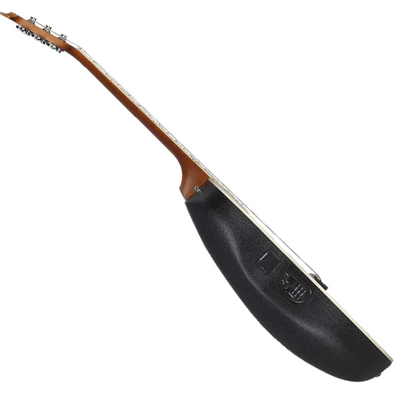 - CS24P-NBM poseduje kompozitno Lyrachord telo srednje dubine sa isečkom, i burled maple gornjom pločom. Specifičan oblik leđa je decenijama zaštitni znak Ovation modela, i u direktnoj je vezi sa njihovim jedinstvenim zvučnim izrazom. Centralni rezonatni otvor nudi jasnu projekciju, i veliku akustičku glasnoću instrumenta. Vrat od nato drveta, sa udobnim blagim V profilom, radijusom od 10 inča, i 20 pragova, u satenskom finišu. Ugrađeni CP100 piezzo pickup, i OP-4CT preamp profesionalnog kvaliteta, pogodni su jednako za studijski rad, ili nastupe. Tradicionalna Ovation kobilica bez pinova poboljšava odziv, i nudi bogat sustain. Izuzetno izbalansiran, zreo instrument, sa klasičnim tonom obožavanim od muzičara širom sveta. Ozbiljan kvalitet materijala i precizna izrada osiguravaju dugu i bezbrižnu upotrebu, u hobi, ili profesionalne svrhe. U atraktivnom Nutmeg Burl Maple finišu u visokom sjaju.