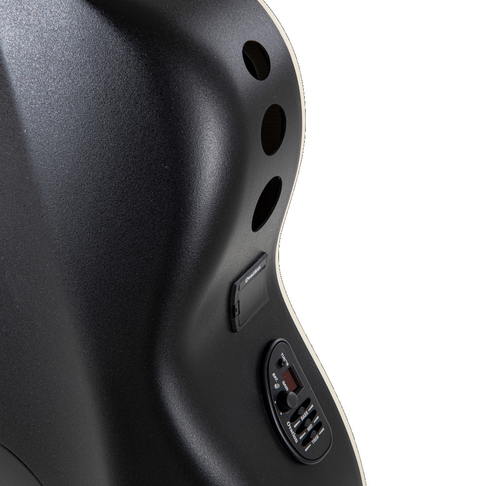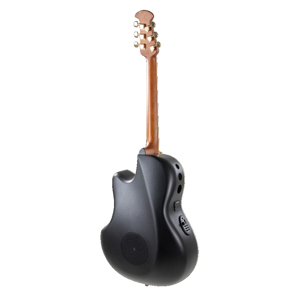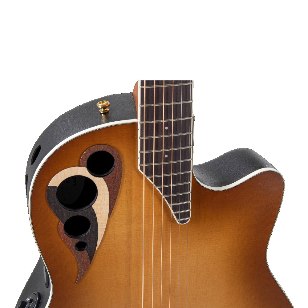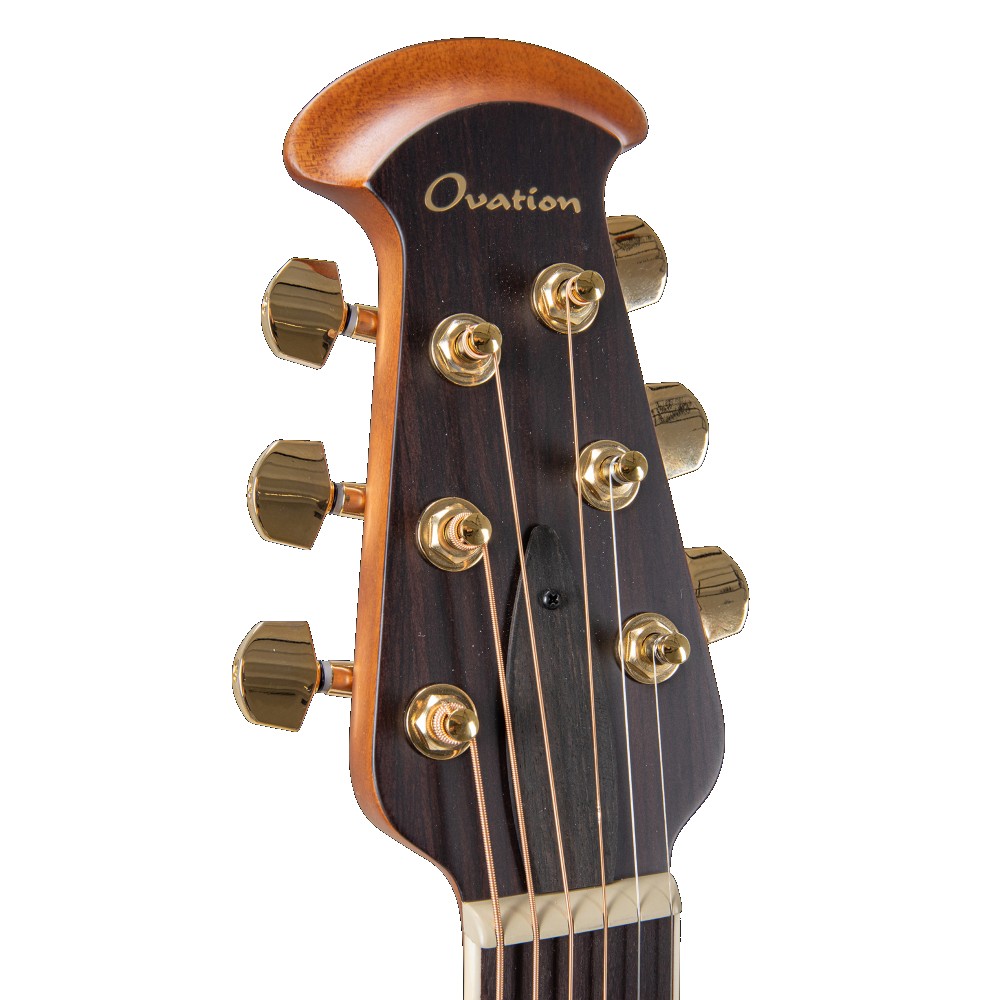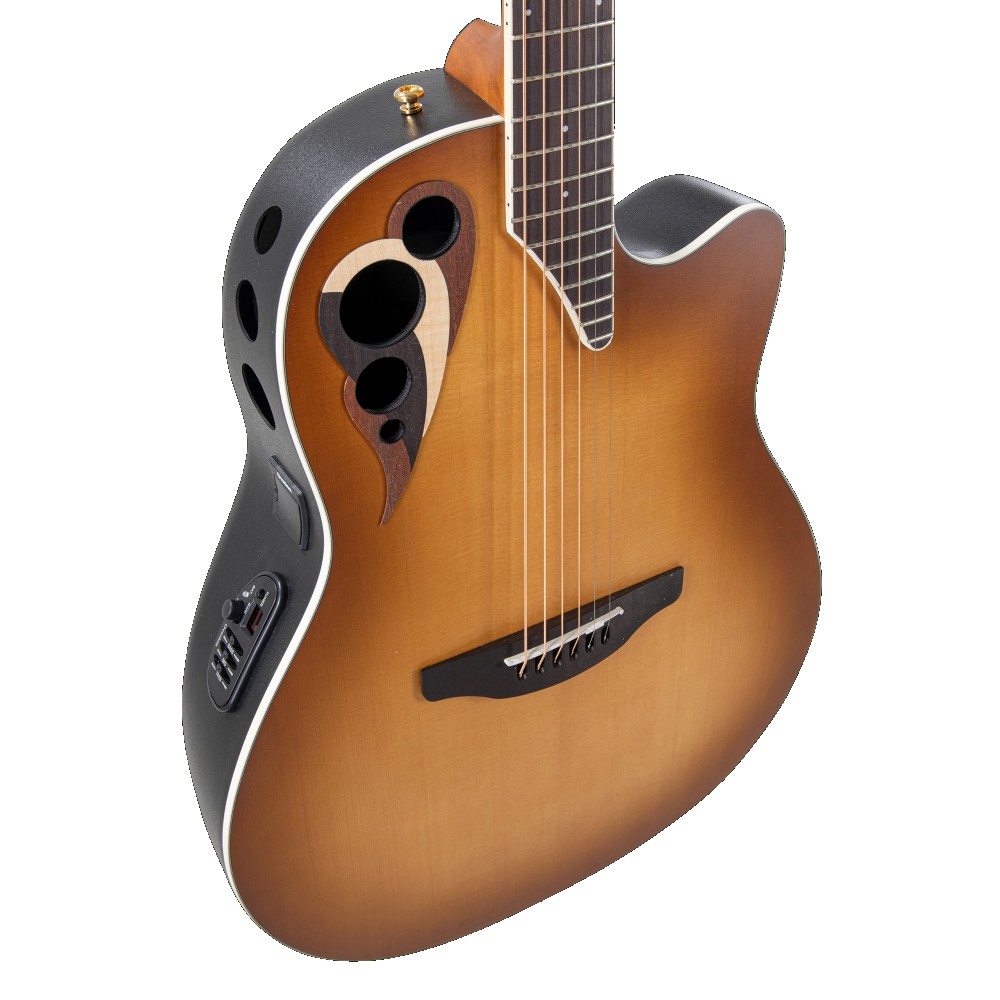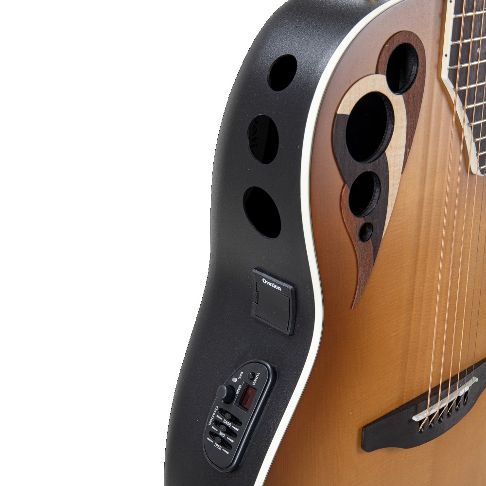 - Tačka pritiska na piezo kristalima je povećana nazubljenim umetkom mosta, koji favorizuje posebno ujednačen zvuk. Pre nego što signal napusti gitaru, unapređuje ga Ovation OP4BT pretpojačalo sa 3-pojasnim ekvilajzerom i ugrađenim tjunerom.