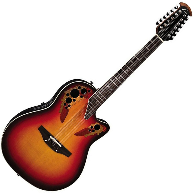 Timeless Innovation. The Ovation Elite 12-String is better than ever. Combining a deep contour, cutaway body with a multi-port soundhole design and solid spruce top results in an exceptional blend of articulation and warmth. The onboard OCP1K pickup and OP Pro Preamp deliver legendary, Ovation tone for a great, plugged-in experience. The New England Burst finish is a classic Ovation look, and the 5 piece, mahogany/maple neck offers the dependable playability that Ovation twelves are known for. Ovation's Timeless Collection Standard Elite is a step forward in innovation that feels like home.
