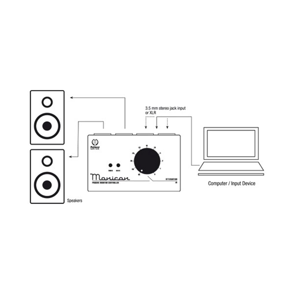Palmer MONICON monitor kontroler omogućava da glasnoća vaših monitora uvek bude pod kontrolom. Pasivni kontroler, koji je veza između stereo izlaza PC-a ili interface-a i monitora, daje preciznu kontrolu glasnoće monitora. Mute i mono dugmići omogućavaju mutiranje output-a i prebacivanje stereo izlaznog signala u mono master signal. Ulazi i izlazi su obezbeđeni sa XLR konektorima i 3.5mm stereo TRS ulazima koji se obično nalaze na kompjuterima.