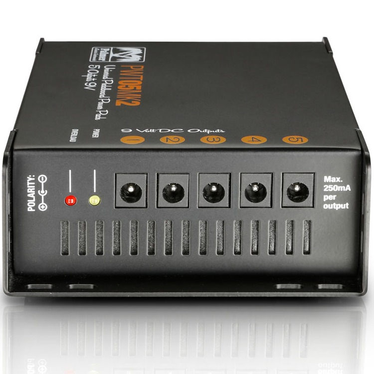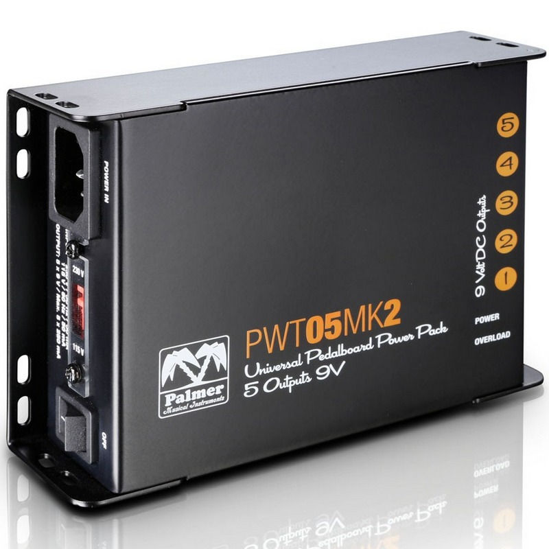 Palmer PWT05MKII napajanje za pedale je univerzalno napajanje za pedale. Ima stabilnih 250mA na svakom od svojih pet izlaza i čini ga kompaktnim i savršenim za praktično svaki pedalboard. Svaki izlaz je izolovan čime je sprečen bilo kakav šum. PWT 05 KM2 ima zaštitu od preopterećenja i dolazi sa 25cm i 50cm dugačkim kablovima za konekciju, kao i sa dva Y kabla. Prvi povezuje dva 9V izlaza da bi povećao struju na masivnih 500mA, tamo gde je to potrebno. Drugi povezuje dva 9V izlaza da bi duplirao voltažu na 18V, kod pedala koje to zahtevaju. U paketu dolazi i „daisy chain“ kablić za povezivanje do pet pedala na jednom izlazu, dokle god ukupna potrošnja ne prelazi 250mA.Kompaktno i kvalitetno napajanje, sa skoro svim mogućim varijantama povezivanja.