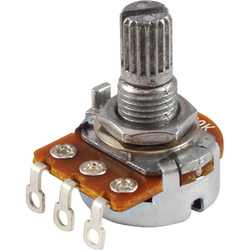 Partsland 943041 je logaritamski potenciometar od 500kΩ sa manjim kućištem (16mm) kraćom osovinom. Osovina je nazubljena. Pogodan za montažu na ploču.