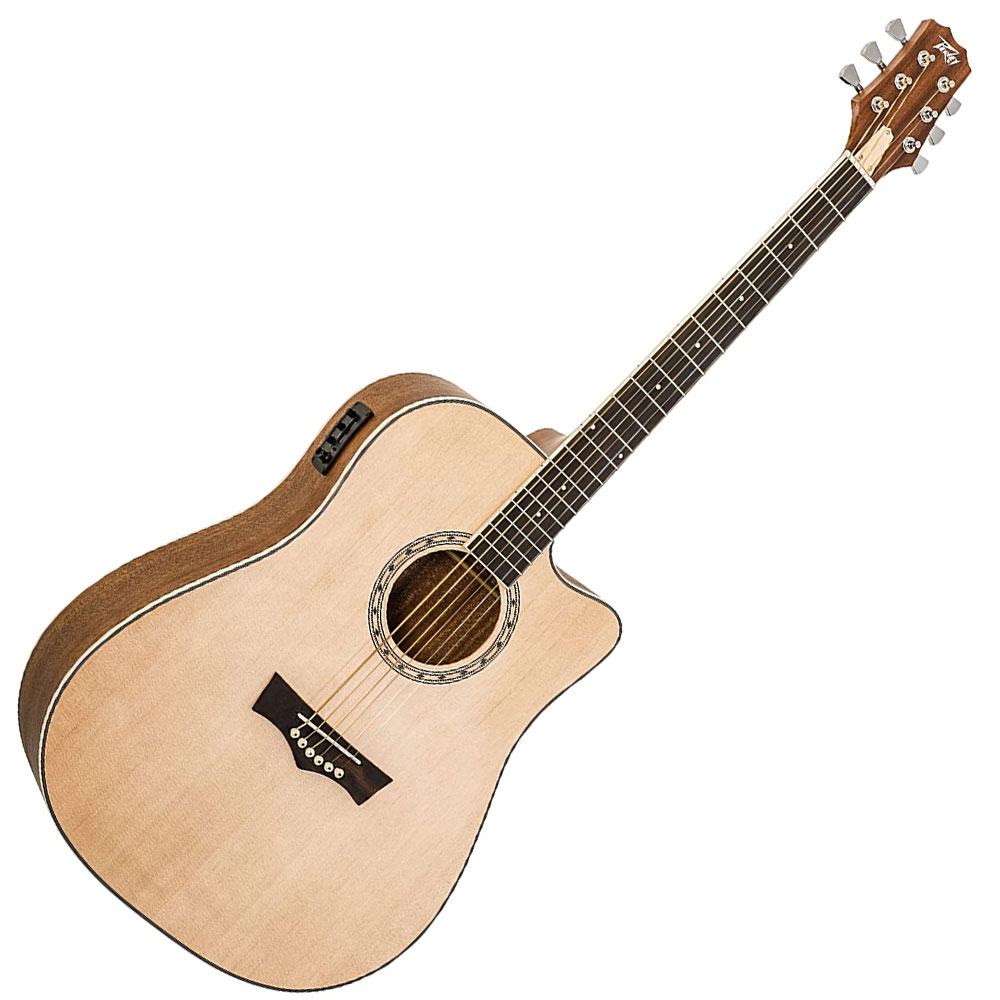 - Peavey DW 2 CE Solid Top akustična gitara nudi bogatu tonsku rezonantnost, svirljivost i izdržljivost. Gitara poseduje Solid Top gornju ploču od smreke, dok su zadnji deo i stranice izrađene su od mahagonija. Vrat od rosewood-a i telo sa bogato ukrašenom rozetom daje ovoj gitari prefinjen izgled. Novi modeli akustičnih gitara koriste materijale vrhunskog kvaliteta i minimalistički finiš što rezultuje reprodukciji fenomenalnog tona i volumena.