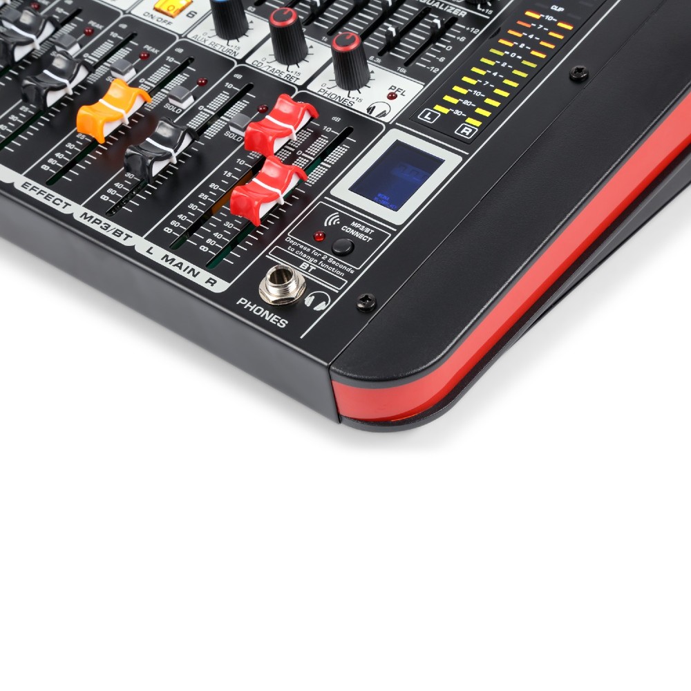 Muzički mikser sa stolnim dizajnom sa ugrađenim pojačalom i mnogim atraktivnim karakteristikama. Karakteristike uključuju prekidače za isključivanje zvuka i solo na svakom kanalu, ugrađeni USB plejer sa digitalnim displejom i BT prijemnik za strimovanje muzike na mikser tokom pauze. Idealno za postavke uživo i male bendove.