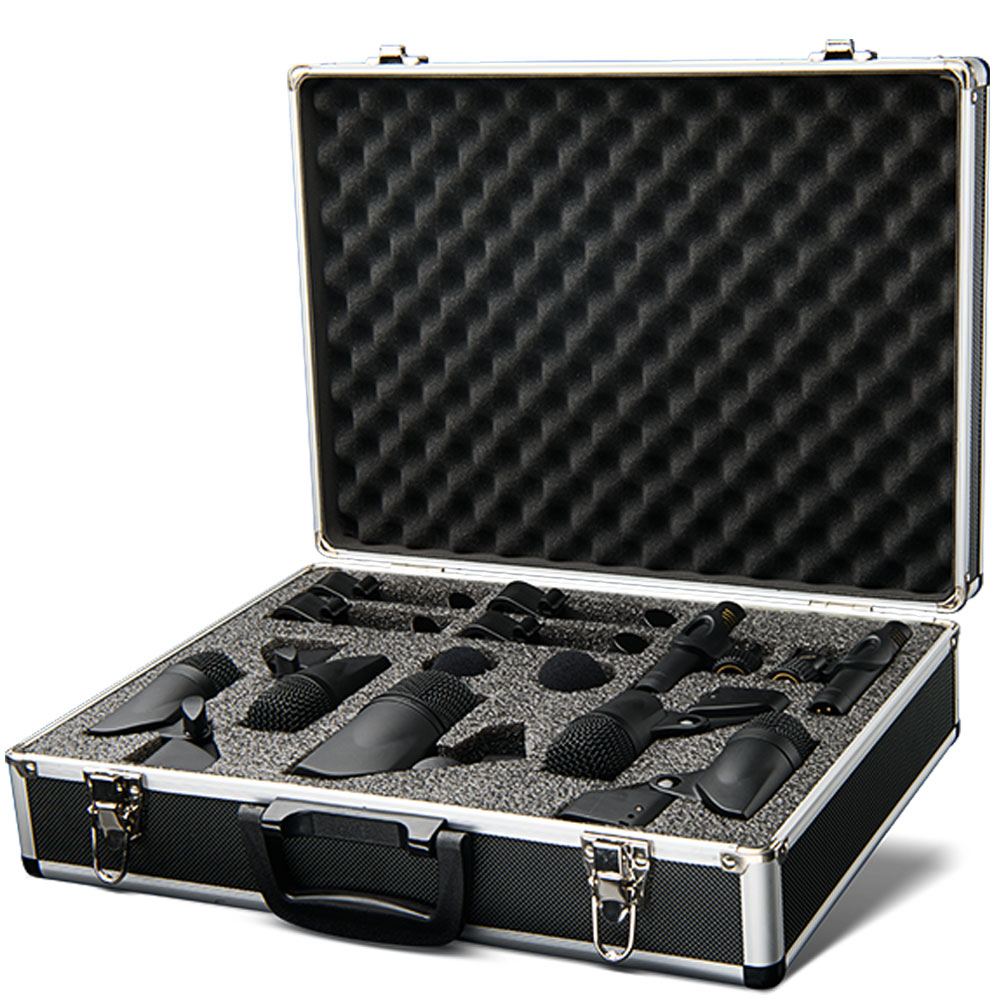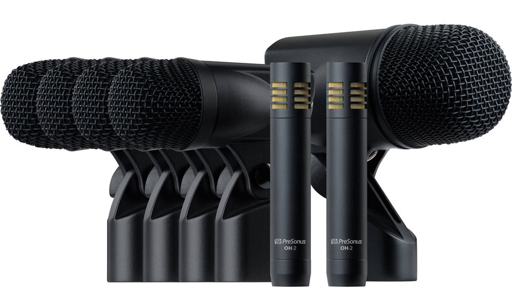 Presonus DM-7 mikrofoni za bubanj u kompletu sa koferom od aluminijuma. Set mikrofona za bubanj sadrži pet dinamičkih mikrofona za tomove, doboš i bas bubanj kao i par kondenzatorskih mikrofona za činele - overhead. Praktično, sve što je potrebno za ozvučavanje standardnog kompleta bubnjeva za žive nastupe ili studijsko snimanje. Pored samih mikrofona sardrži i držače (clamp) koji su predviđeni za kačenje na aluminijumske obruče bubnjeva. Presonus DM-7 mikrofoni za bubanj je sve što je potrebno za kvalitetno ozvučavanje petodelnog kompleta bubnjeva. Komplet se sastoji od četiri Presonus ST-4 dinamička mikrofona superkardioidne usmerenosti namenjenih za ozvučavanje tomova. Jenim Presonus BD-1 dinamičkim mikrofonom namenjenim ozvučavanju bas bubnja i parom Presonus OH-2 kondezatorskih mikrofona.