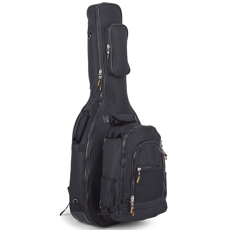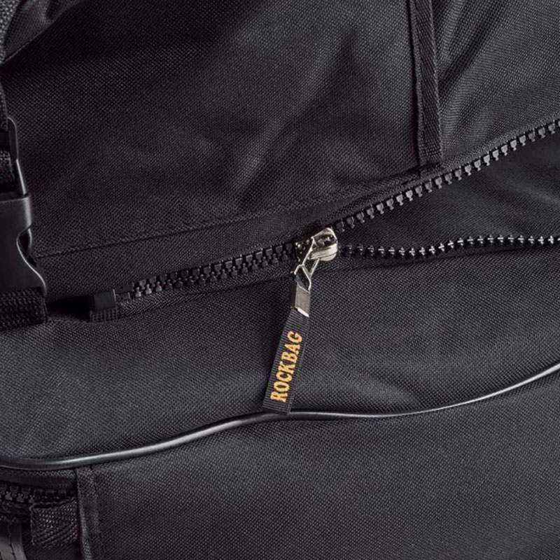 Rockbag RB 20458 B Cross Walker, Robust instrument bag with detachable backpack; suitable for Classic Guitars. Strong, water-resistant RokTex® - surface material, inside material: extra strong black nylon with additional reinforcement in the machine head- and bridge area. Perfect protection of the instrument by 20 mm cushioning, Neck-Support- and Guitar-Saving-System. The ergonomically shaped and cushioned backside and the extra wide, cushioned backpack straps offer the highest carrier comfort; the PVC-strengthened bottom with metal feet offers a safe standing position. The pocket put up in the front neck area, together with the backpack that can be used also separately, offer space for accessories. Gigboard of 15 mm plywood covered with synthetic material with 4 big rubber feet; delivery includes a hook and loop tape to fasten various effect pedals on the hook and loop surface.