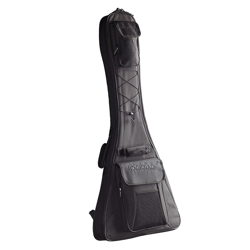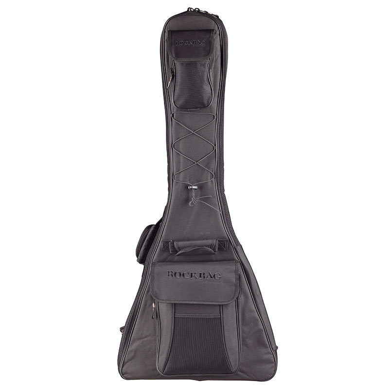 Rockbag RB 20506 FV STARLINE FV-Style. Padded bag for FV Style electric guitar - Deluxe Series. Made of sturdy water-resistant RokTex fabric - 20mm padding - 2-way zip 0,8cm wide with nylon zip - Internal lining in black nylon. Equipped with Guitar-Saving-System (extra protective cushion at the strap-lock) and Neck-Saving-System (extra protective cushion and safety strap with Velcro for fixing the neck) for maximum protection - RokTex protective patches at the mechanical and bridge - Large front pocket with zip and 2 compartments (able to house the RockStand Worwei guitar support)