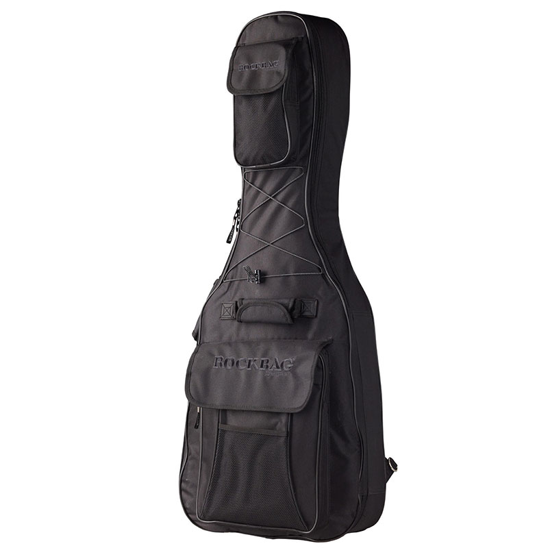 Rockbag RB 20508 STARLINE. Padded bag for 4/4 classical guitar. Starline series - Made of sturdy 600 denier water-resistant polyester - 27mm padding (20mm foam + 5mm polystyrene + 2mm rigid plastic). 2-way wide zip 1,0cm with nylon zipper - Inner lining in black velvet - Equipped with Guitar-Saving-System (extra protective cushion in correspondence of the strap-lock) and Neck-Saving-System (extra protective cushion and safety strap with velcro for fixing the neck) for maximum protection - RokTex protective patches in correspondence with the mechanics