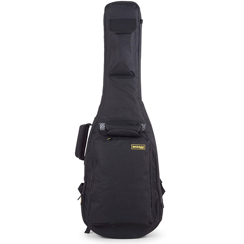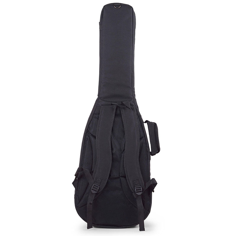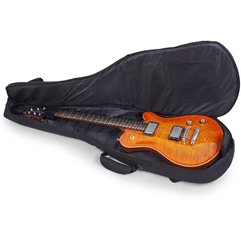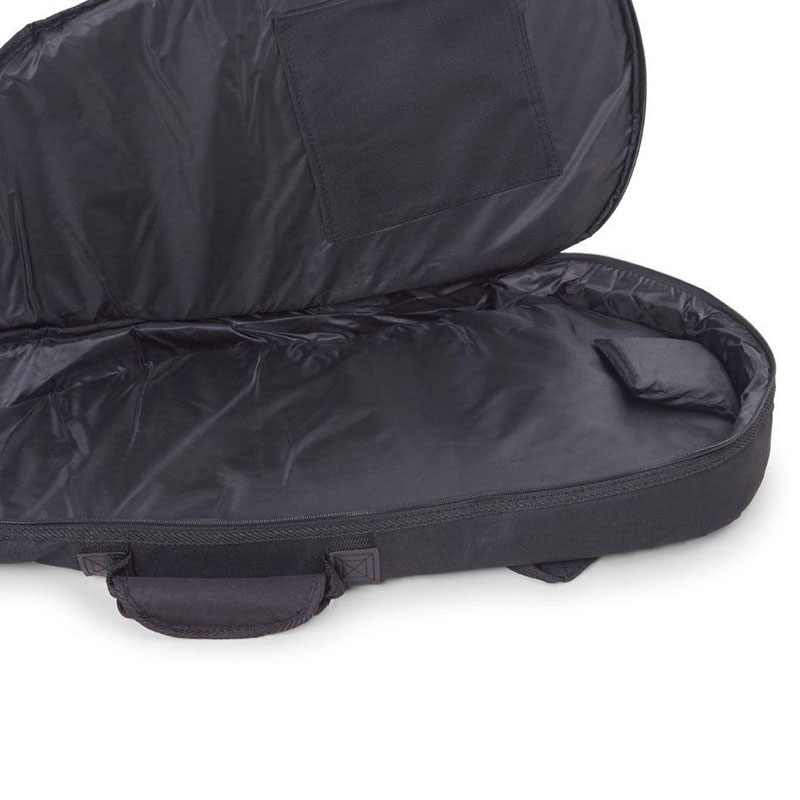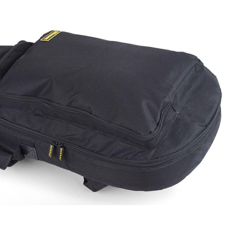 - Made of sturdy water-resistant RokTex fabric - 15mm padding - 2-way zip 0.7cm wide with nylon zip - Black nylon internal lining. Equipped with Guitar-Saving-System (extra protective cushion at the strap-lock) - RokTex protective patches at the mechanics and the bridge - Large front pocket with zip (able to house the RockStand Worwei guitar stand)