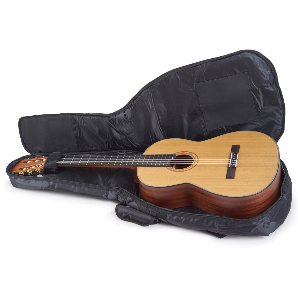 Rockbag RB 20518 B Student Line torba za klasičnu gitaru. Padded bag for 4/4 classical guitar - Student series. Made of sturdy water-resistant RokTex fabric - 10 mm padding - 2-way zip 0.7cm wide with nylon zip - Internal nylon lining black. Equipped with Guitar-Saving-System (extra protective cushion in correspondence of the strap-lock) - RokTex protective patches in correspondence with the mechanics and the bridge - Large front pocket with zip (able to house the RockStand Worwei guitar support)