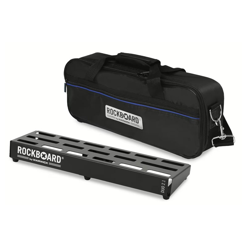 RockBoard DUO 2.1 pedalboard sa torbom. Može da podrži od 4 do 7 pedala (u zavisnosti od veličine pedala) i dolazi sa savršeno usklađenom torbom za koncerte.