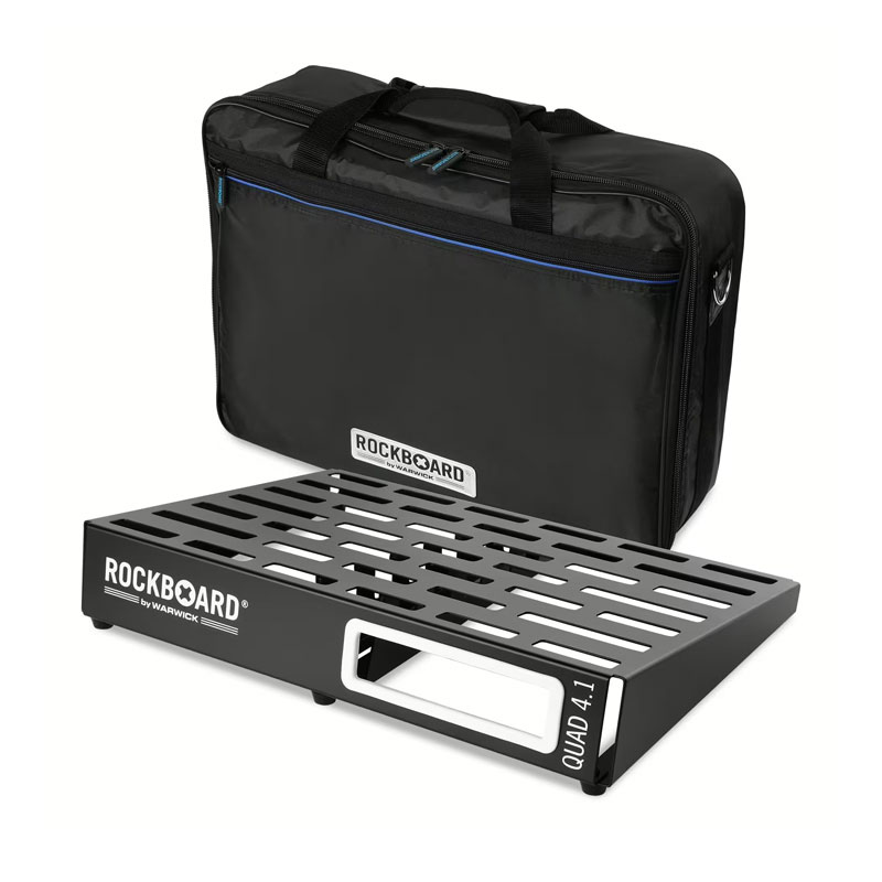 RockBoard QUAD 4.1 pedalboard sa torbom. Može da podrži od 7 do 12 pedala (u zavisnosti od veličine pedala) i dolazi sa savršeno usklađenom torbom za koncerte.