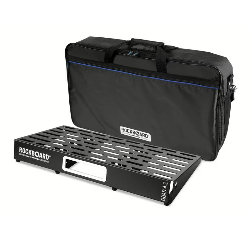 RockBoard QUAD 4.2 pedalboard sa torbom. Može da podrži od 9 do 15 pedala (u zavisnosti od veličine pedala) i dolazi sa savršeno usklađenom torbom za koncerte.