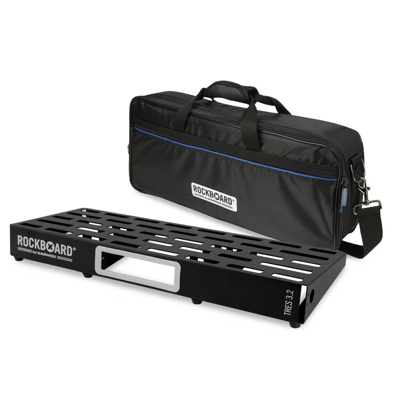 RockBoard TRES 3.2 pedalboard sa torbom. Može da podrži od 7 do 12 pedala (u zavisnosti od veličine pedala) i dolazi sa savršeno usklađenom torbom za koncerte.