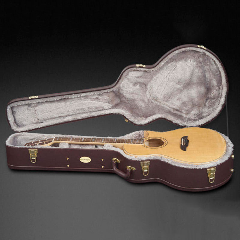RockCase RC 10515 BRCT/SB. The cases of the Superior Deluxe Line are high-quality, sturdy, wooden cases for various acoustic guitar models. They are specially designed for the dimensions of the Framus Legacy acoustic guitars. Also fit many guitars from other manufacturers. They have domed lids with foam insert and an inner lining made of soft long-haired plush. It protects the instrument from all sides. Each available with brown or black imitation leather cover, their solid locks, metal feet and the comfortable handle ensure safe and stress-free handling. Their golden hardware together with high-quality processed leatherette cover gives them an extremely noble appearance, worthy of the Framus Legacy Series.