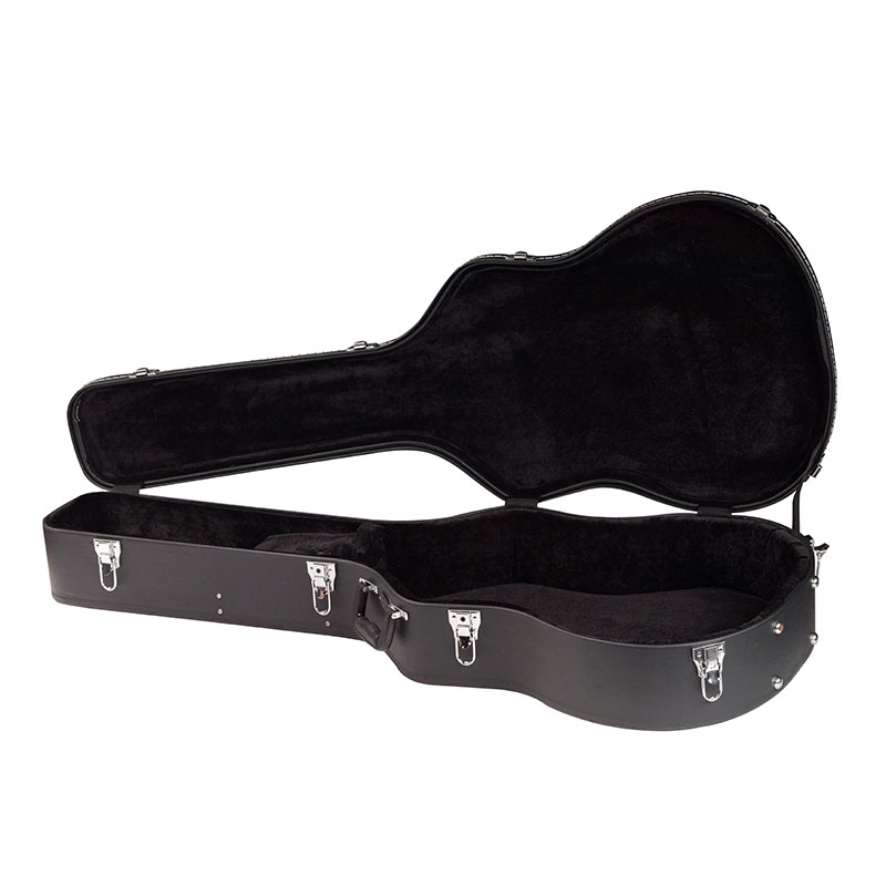 RockCase RC 10611 B/SB. Robust guitar wood case with flat top and black Tolex surface material for every 12 String Dreadnought Guitar. For ideal instrument protection guarantees the wide neck holder with additional neck cushion and Headstock Support System, as well as a thick foam insert in the middle of the cask cover and the with foam rubber amplified inner edge. The black velvet design preserves the damageable instruments finish. Separate interior compartment with cover for storage of different accessories. Massive locks, metal feets and a robust PVC handle care for a stress free handling.