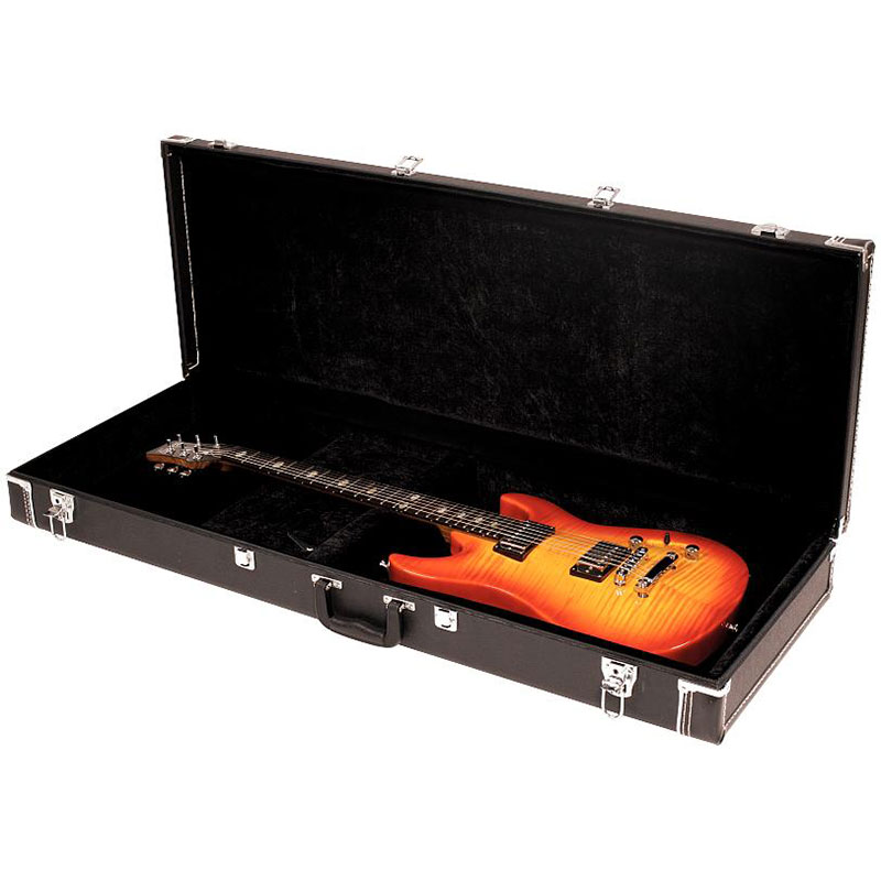 RockCase RC 10627 B/SB. For optimum protection of your instrument guarantees the wide neck place with additional neck cushioning and Headstock Support System, as well as a thick foam material insert in the middle of the cap and the inside edges that are strengthened with foamed rubber. The black velvet design is gently to the sensitive instrument finish. Separate inside pocket with cap to store diverse accessories. Massive locks, metal feet and a robust synthetic material handle provide a safe and stress-free handling.
