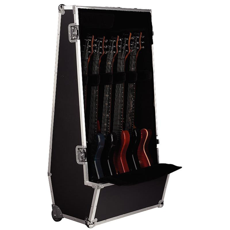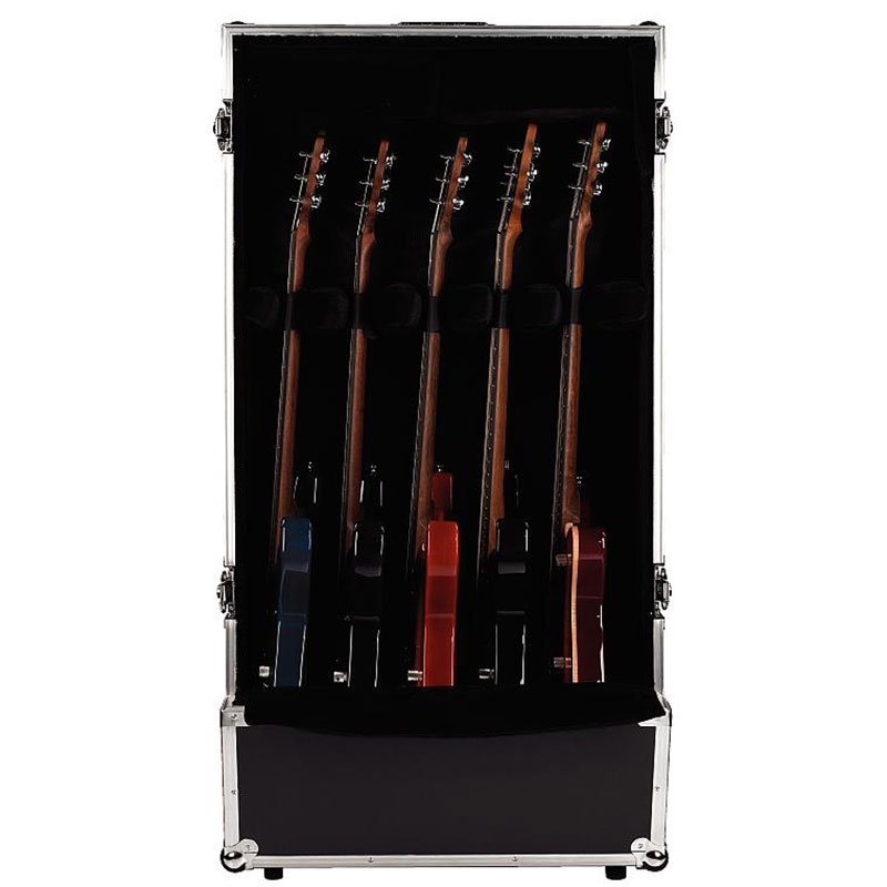 RockCase RC 10861 GU/FL Standard Line. Hard Case for 3 or 5 instruments. Outer material: 10 mm plywood, internal liners in black velvet. Inner edge coated with foam padding, polystyrene core covered in velvet on the bottom for protection of bodies, support system of handles with padding,
