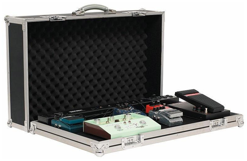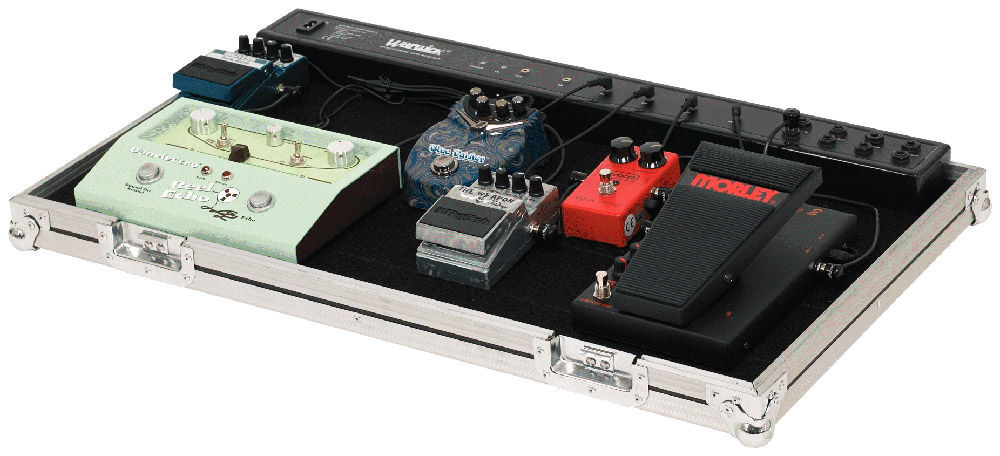 RockCase čvrsti flightcase kofer od 8mm šperploče prekrivene crnim PVC-om, unutrašnjost tapacirana i prekrivena Velcro (čičak) materijalom, četiri hromirane leptir brave. Skidajući poklopac, dok pedale ostaju u plićem delu. Sadrži Velcro trake za fiksiranje pedala i strujne kablove.