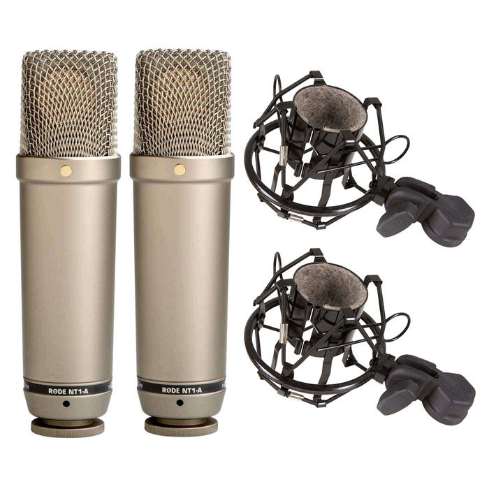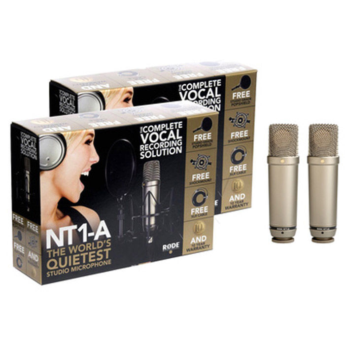 Rode NT1-A set od dva sonički uparena kardioidna kondenzatorska mikrofona. Rode NT1-A kondenzatorski mikrofon je postao industrijski standard za rad i snimanje u studiju kao i za radio primenu! Daje izuzetnu toplinu zvuka, veliki dinamički opseg, čistinu, ali i visok SPL što je karakteristika samo skupljih kondenzatorskih mikrofona. Sa nivoom šuma od svega 5db naširoko je poznat kao najtiši studijski mikrofon. Ovaj nizak nivo šuma čini ga idealnim za snimanje vokala, gitara i perkusija. Uz mikrofon u kompletu dolaze pop filter, suspenzor, kabl i pokrivka za zaštitu od prašine.