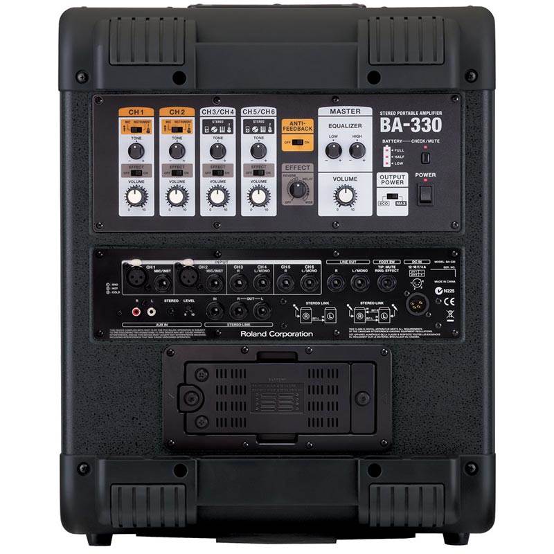 - Roland BA-330 PA Aktivni stereo portabl sistemBilo na baterije ili preko priključka na električnu mrežu. BA-330 poseduje zvučne performanse koje su neverovatne u odnosu na njegovu fizičku veličinu. Njegovo digitalno stereo pojačalo pogoni 4 stereo zvučnika od 6.5" i 2 visokotonska zvučnika, koji su postavljeni tako da kreiraju široku stereo zvučnu sliku. Idealno sveobuhvatno portabl rešenje za potrebe PA ozvučenja manjih prostora, crkvi, konferencija, seminara, sastanaka i još mnogo toga.
